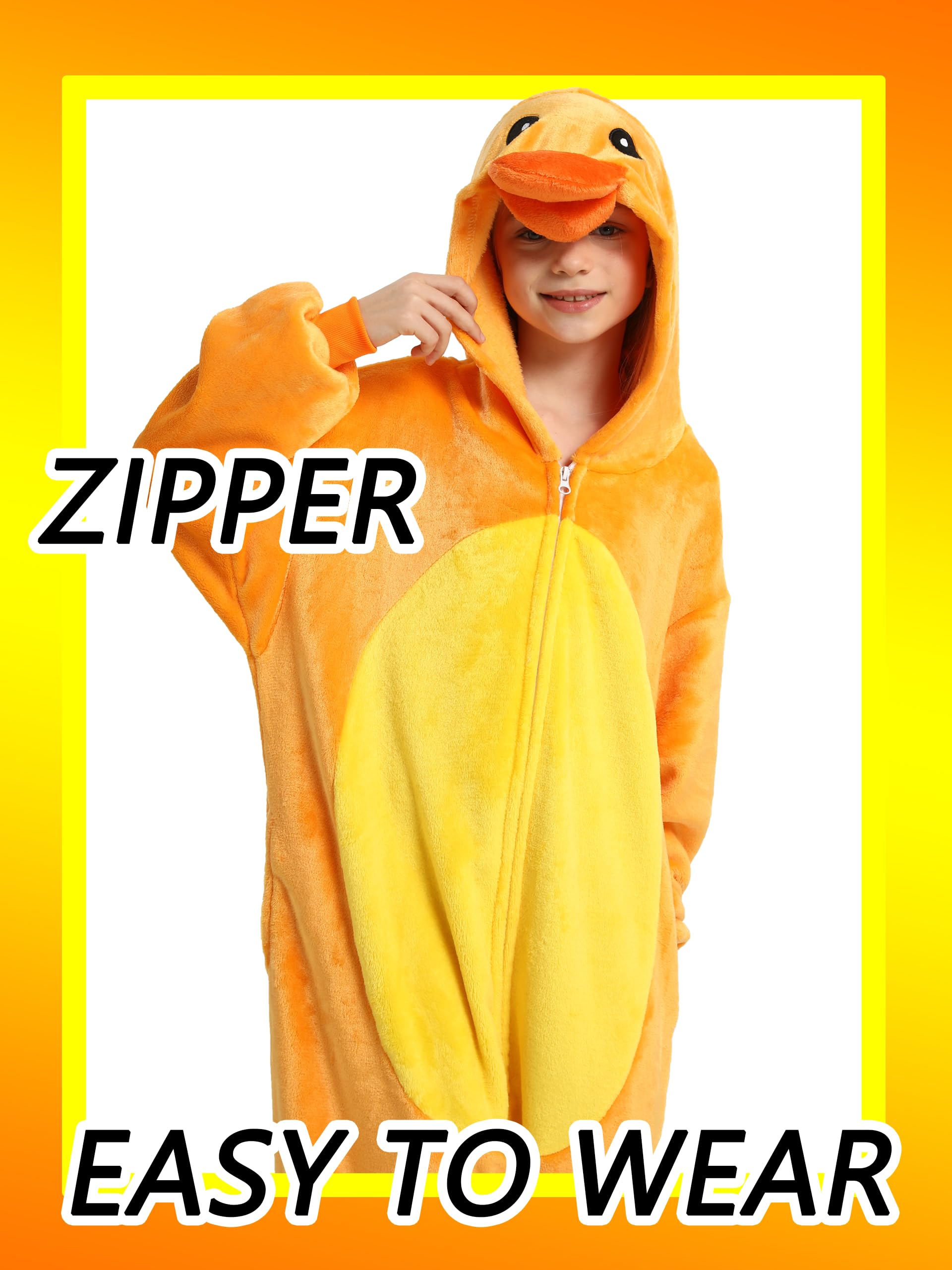 Lonulain Unisex Kids Animal Oneise Pajamas, Boys Girls Flannel Hooded Halloween Cosplay Costume/Homewear/Sleepwear (Duck,3-4 Yea