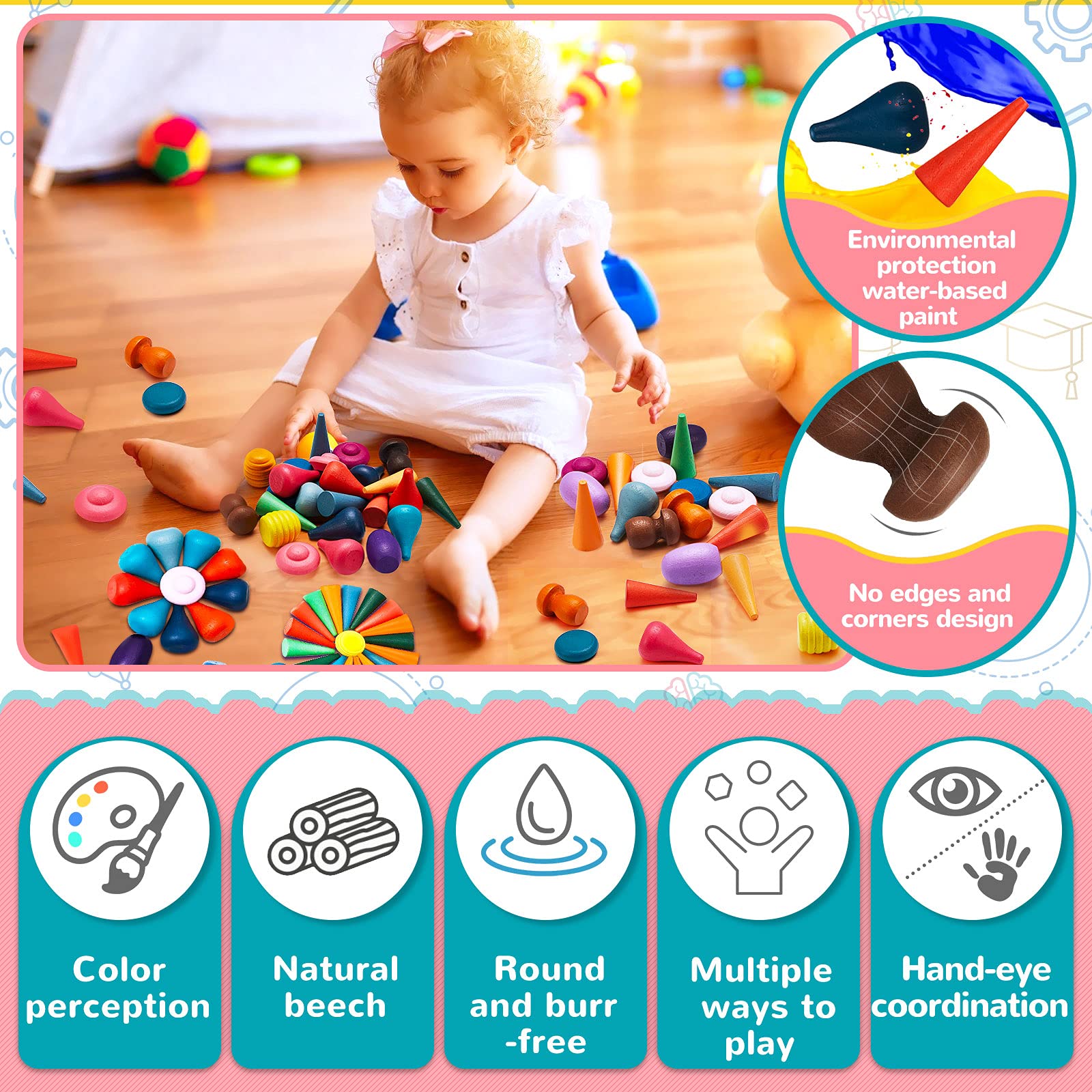Loose Parts Play Materials Set Wooden Mandala Toys Kit Wood Sensory Play Toys 27 Rainbow Color 7 Shapes Loose Parts For Teens Students Early Learning Materials (81)