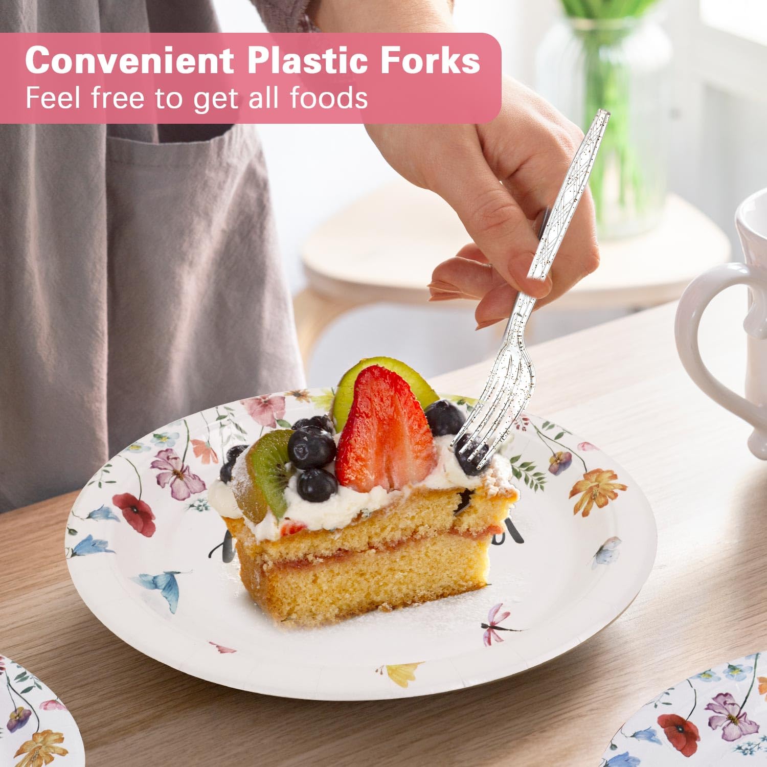 Lopeastar 100Pcs Wildflower Party Decorations Plates Set, Floral Paper Plates Napkins and Forks Flower Birthday Decorations for