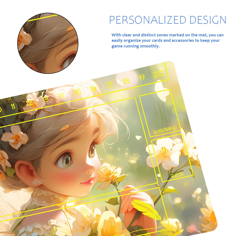 ? LORCANA Playmats Compatible 24x14 Inches Gaming Mat is the ultimate playing surface for all your board games and TCGs. ? This playmat features non-slip rubber for stability and durability, making sure your gameplay stays smooth and uninterrupted. ? With clear and distinct zones marked on the mat, you can easily organize your cards and accessories to keep your game running smoothly. ? The LORCANA Playmat is perfect for players of all levels, from casual board gamers to seasoned TCG pros. ? This playmat is easy to clean and store, making it the perfect addition to your gaming setup.Extra game mat collection bag!