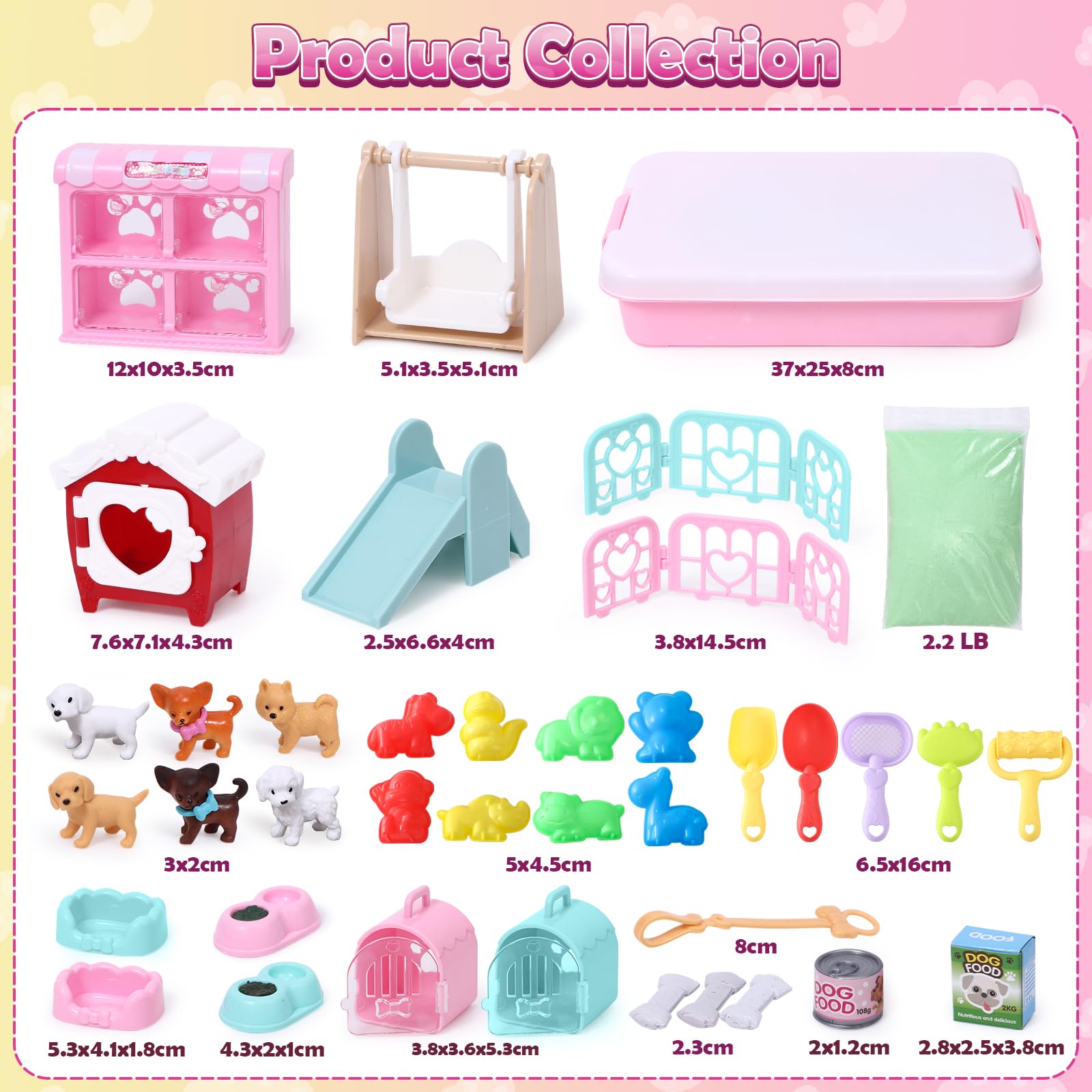 Lorfancy Dog Sandbox Toys Kids Play Sand Kit Toddler Sensory Bin Toy 2.2lbs Sand Pet Dog Figures Care Role Pretend Play Beach To