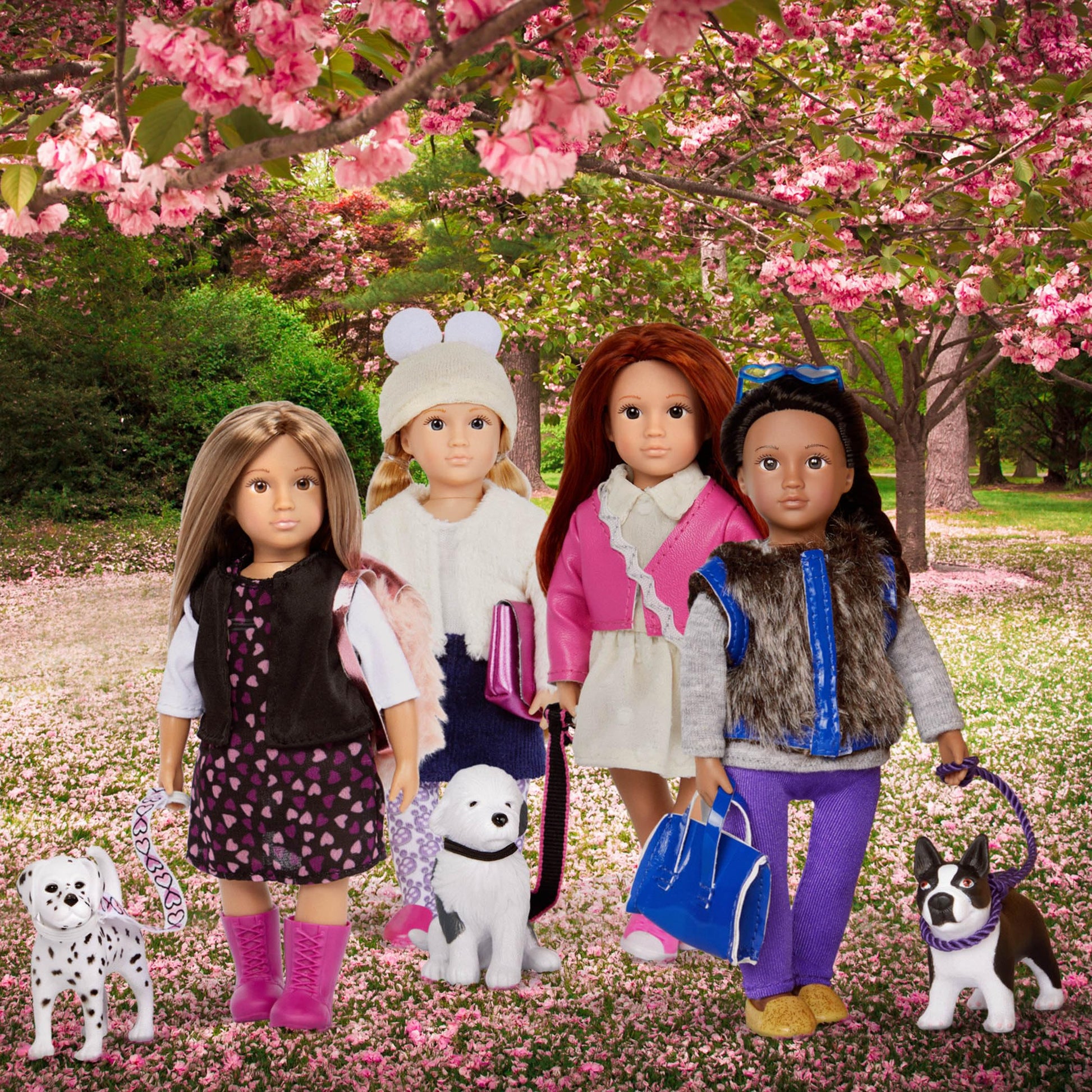 Welcome Gia And Gunner To The Neighborhood! This 6-Inch Doll And Super Cute Dalmatian Love Spending Time In The City. Gia'S Arms And Legs Rotate To Help Her Walk Gunner, And The Leash Makes Sure He'S Always By Her Side. This Mini Fashion Doll Has Warm Brown Eyes, And Her Long Brown Hair Is Fun To Brush And Style! Her Outfit Features A Dress With Mini Heart Prints, A Stylish Jacket, A Backpack To Hold Accessories, And Bright Pink Boots. This 6-Inch Doll And Pet Pair Are Easy To Hold And Carry On Adventures, And They Show Just How Much Fun Having A Puppy Can Be!