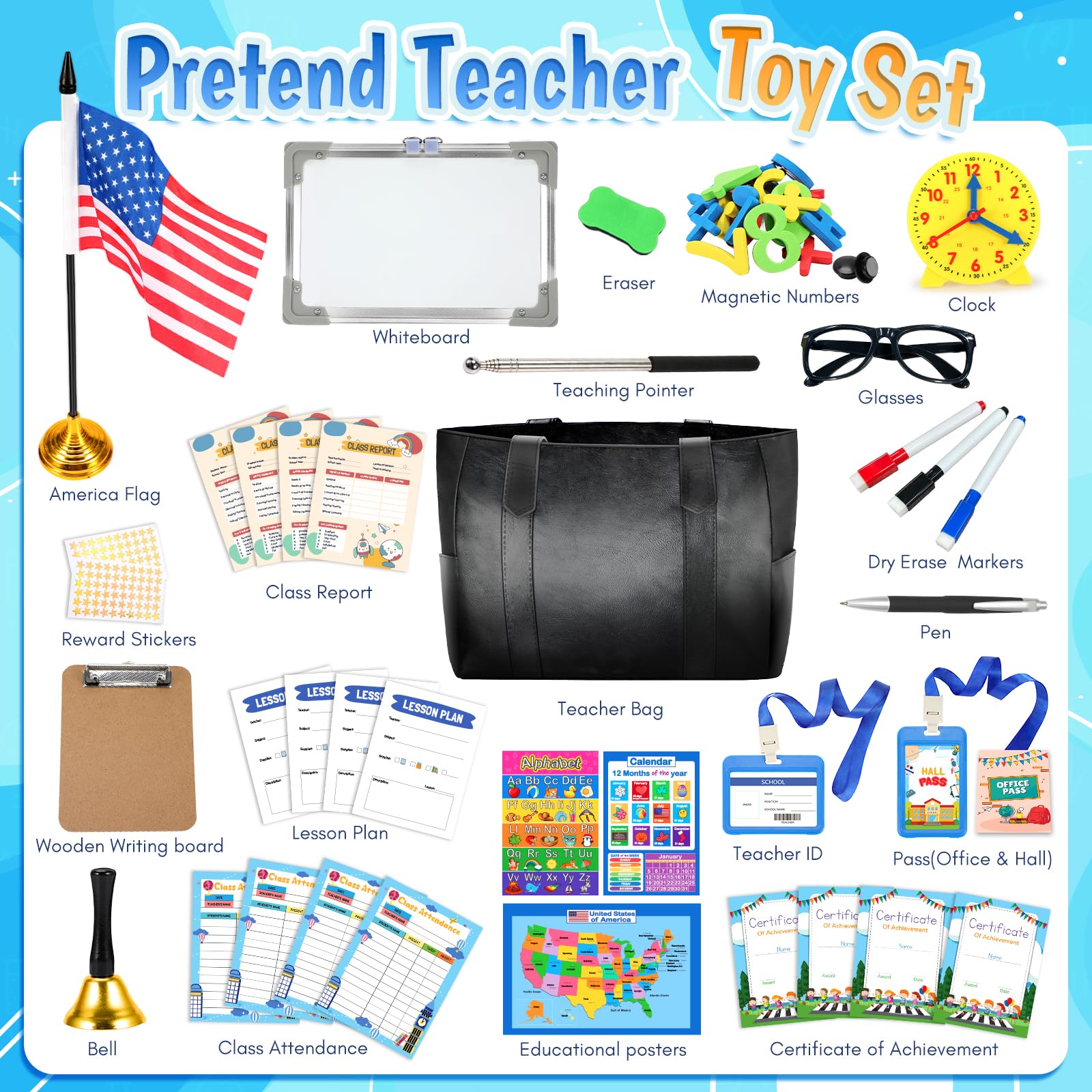 Complete Loscola Pretend Play School Set For Kids, Inspire Your Child'S Teacher Dream - This Pretend Teacher Kit Contains Everything Your Child Needs To Become A Teacher, Allowing Children To Enjoy Fun Teacher Role-Playing Fun. Complete Pretend Teacher Playset For Girls - The Whiteboard Has A Dual Smooth And Durable Magnetic Writing Surface That Can Be Easily Dry-Erased With Dry Erase Markers, And The Magnetic Number Stickers Can Be Attached On The Whiteboard, Allowing Children To Practice Spelling And Math While Playing, And Grow Happily. Fun And Educational, Grow In Games - This Pretend Play Teacher Sets For Kids Is Perfect For Children Who Like Pretend Games! Encourage Children To Think From Different Perspectives Through The Pretend Play For Girls, Stimulate Their Imagination, And Enhance Self-Awareness! Learning And Rewards - Children Create Their Own Small Classroom Through The Educational Posters In This Teacher Set For Kids, And Present Reward Certificates To Students Like A Real Teacher, Which Helps Stimulate Their Desire To Learn And Become More Confident. Creative Ideal Gift - The Kids School Play Set Helps Inspire The Teacher Dream Of Children Aged 4-12. Children Can Not Only Play Educational Games With Friends, But Also Pretend To Be Teachers And Students With Their Parents, Creating Happy Parent-Child Moments And Memories!
