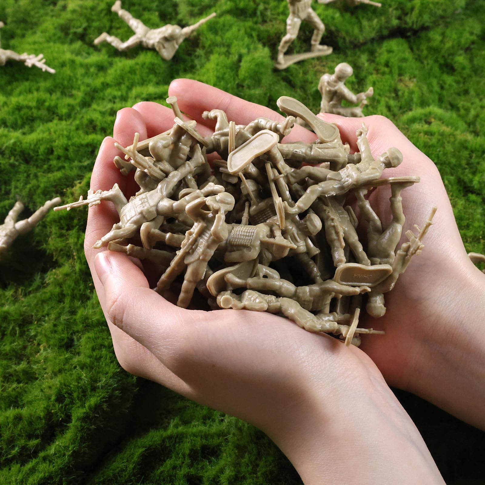 • Q: How many toy soldiers are included in the set? A: The set includes a total of 100 toy soldiers in various poses, featuring both green and yellow figures.