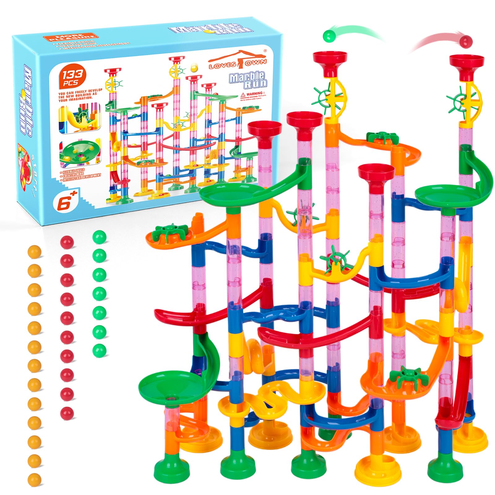 Lovestown 133Pcs Marble Run Set, Kids Construction Building Blocks Toys With 30 Plastic Marbles, Stem Educational Toys, Birthday Party Gifts For Kids, Maze Track Easter Toys, Parent-Child Game Toy