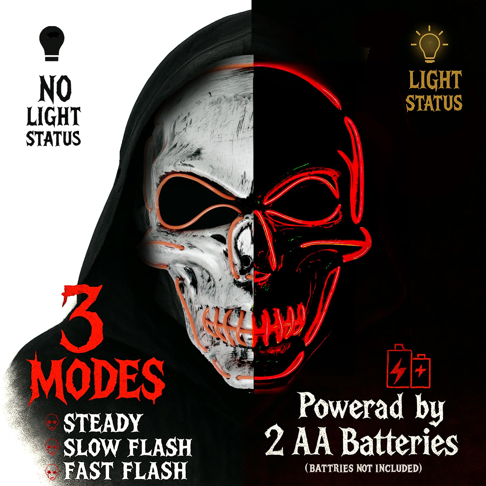 All-in-One Grim Reaper Set:Grim reaper costume set includes glowing red skull mask scary faceless hood deluxe robe gloves & sickle. Perfect Details and Stitching Crafts. | Multiple Sizes for Choose:Boys Halloween costumes available in kids' sizes S (5-7) M (8-10) L (10-12) plus a standard mature-themed size. Please refer to the size chart before ordering to ensure the best fit. | Bloody Reaper Look:This Halloween costumes for kids features bloody stains and handprint effects plus a creepy scythe - perfect for standing out in scary Halloween costumes | Light-Up Ghostface Mask:Ghostface costume kids mask glows red with 3 light modes (steady fast flash slow flash); scary Halloween costumes mask fits comfortably with adjustable strap. | Perfect for Spooky Parties:This grim reaper costume creates a spine-chilling look for reaper costume parties Halloween night cosplay or haunted house events - unforgettable and eerie!