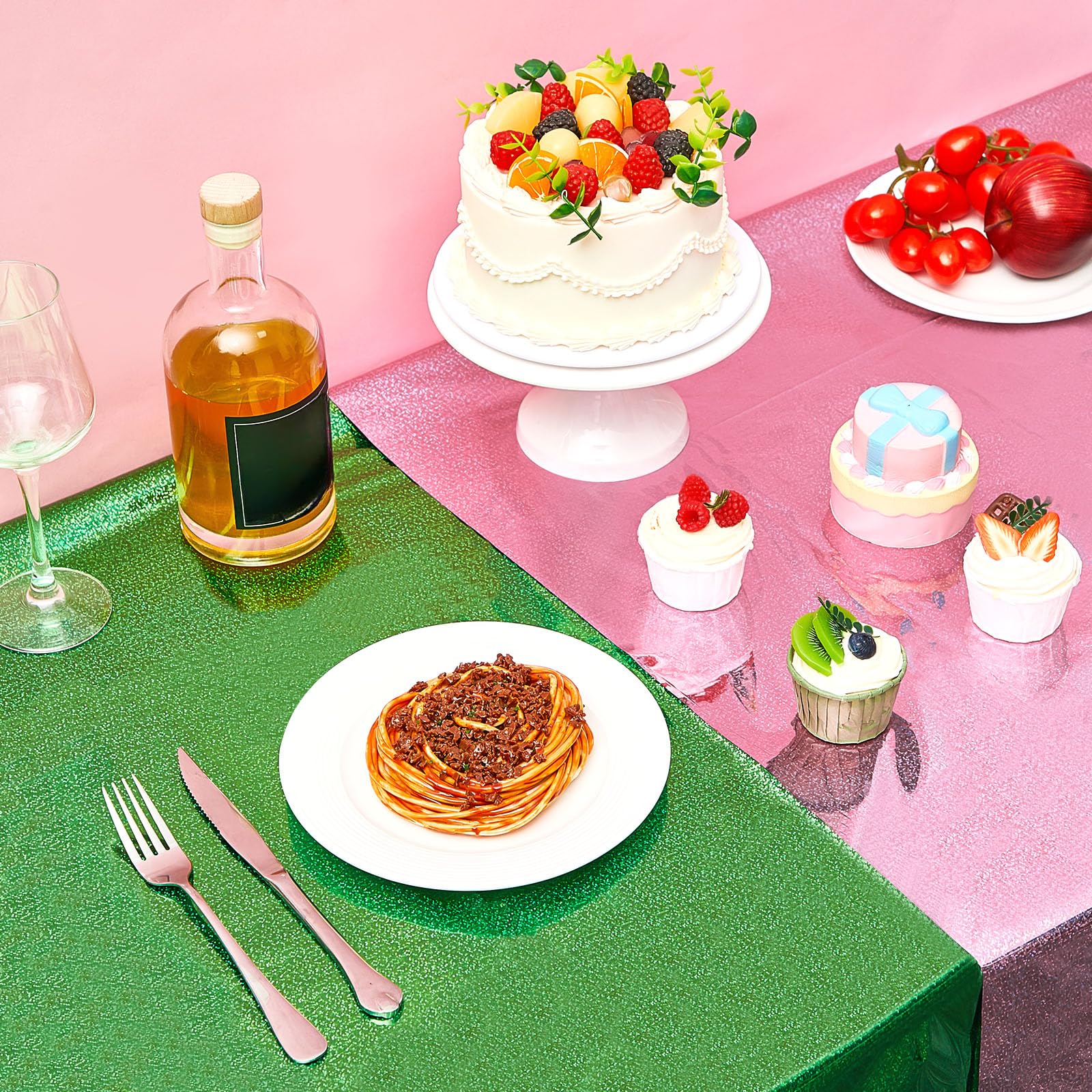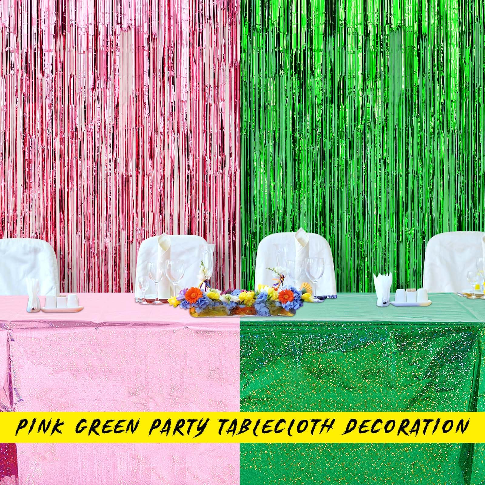 Features: Easy to Clean for Repeated Use: Our shimmer tablecloths can be easily wiped clean, allowing for multiple reuse in upcoming celebrations. Protect your table from juice stains and prevent scratches from objects like pens, glassware, and cutlery. An economic and practical choice for any party. Universally Sized to Fit Most Tables: With a universal size of 54 x 108 inches, our holographic table cloths for parties is suitable for most standard tables, ensuring a clean and protected tabletop. Its ideal for large folding buffet tables, outdoor picnic tables, dining, and kitchen tables. Alternatively, you can cut it into suitable sizes according to your needs. Specifications: Material: holographic plastic Color: pink, green Size: about 54 x 108 inches Package includes: 2 x Holographic tablecloth(include 1 pink and 1 green) Notes: Manual measurement, please allow slight errors on size. The color may exist a slight difference due to different screen displays.