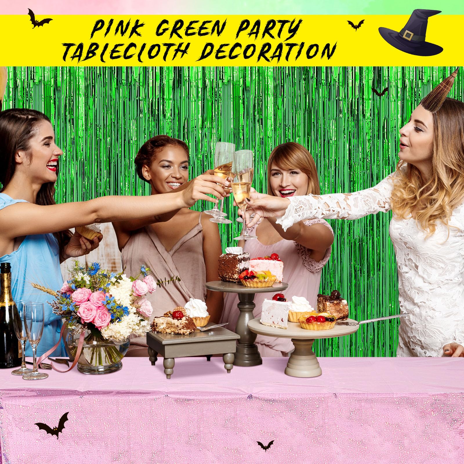 LOYIM 2 Pcs Witch Holographic Tablecloth for Party Pink and Green 54 x 108 Witch Princess Theme Decorations Iridescent Metallic