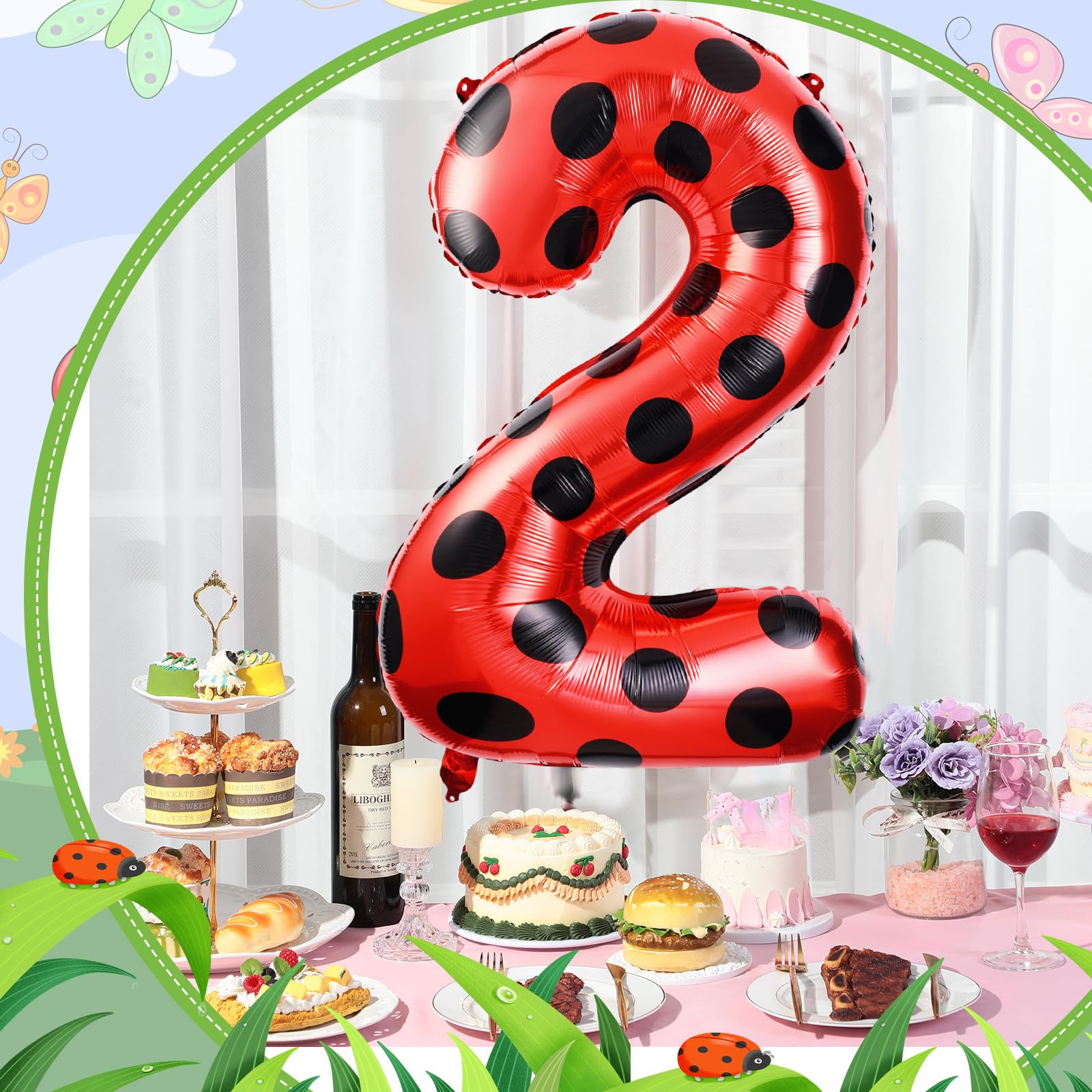 Lunmon 40 Inch Ladybug Large Number 2 Balloon 40 Inch Ladybug Balloon Birthday Decorations Supplies Black Red Polka Dots Ladybir