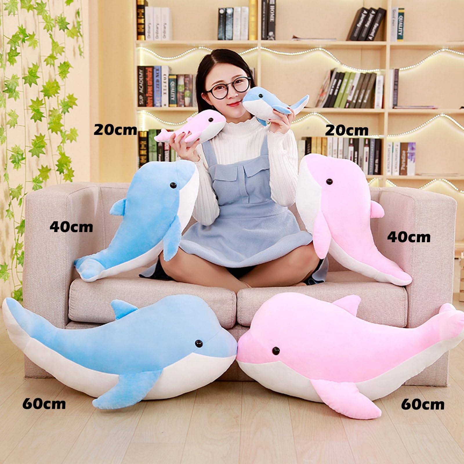 Did you know there are over 40 species of dolphins who can swim up to 20 miles per hour in our oceans and rivers? with large brains similar to humans, dolphins are known for being highly intelligent, social, and playful mammals and this ocean animal plush is no exception! travel along with this aquatic stuffed toy and swim from sea to sea in the depths of your imagination.