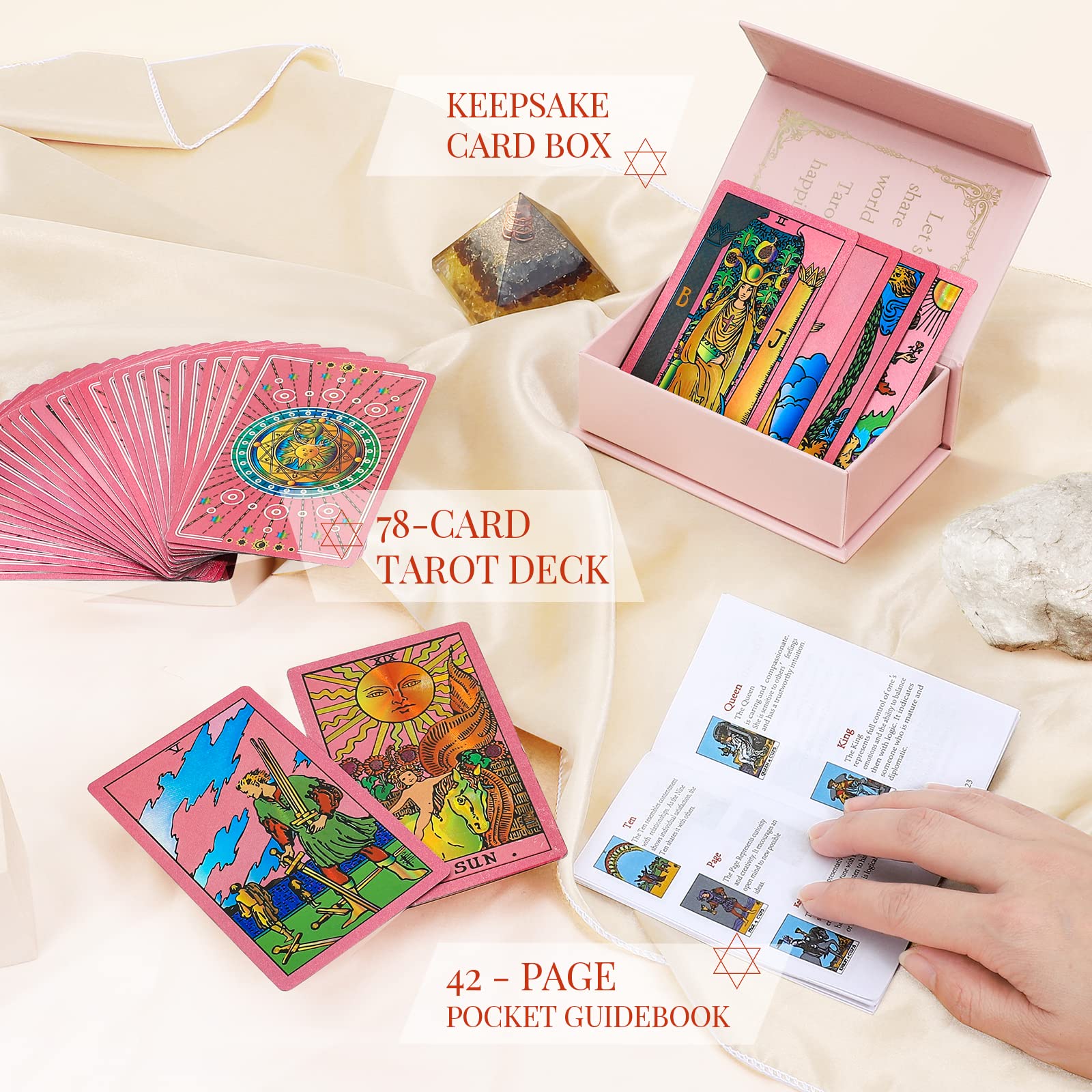 Lyingfish Tarot Cards Pink Tarot Cards With Guide Book Waterproof And Wrinkle Resistant Tarot Gold Foil Tarot Cards For Beginners Pink Tarot Deck Tarot Cards With Meanings On Them Gold Tarot Cards