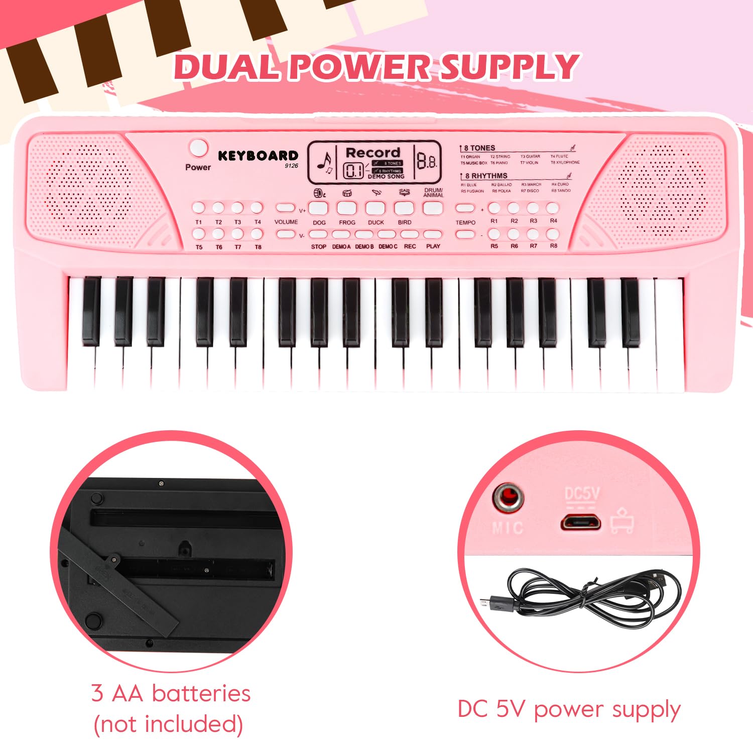 M Sanmersen Kids Piano Keyboard With Microphone 37 Keys Portable Electronic Keyboards For Beginners Musical Toy For 3/4/5/6 Year Old Girls Boys, Pink