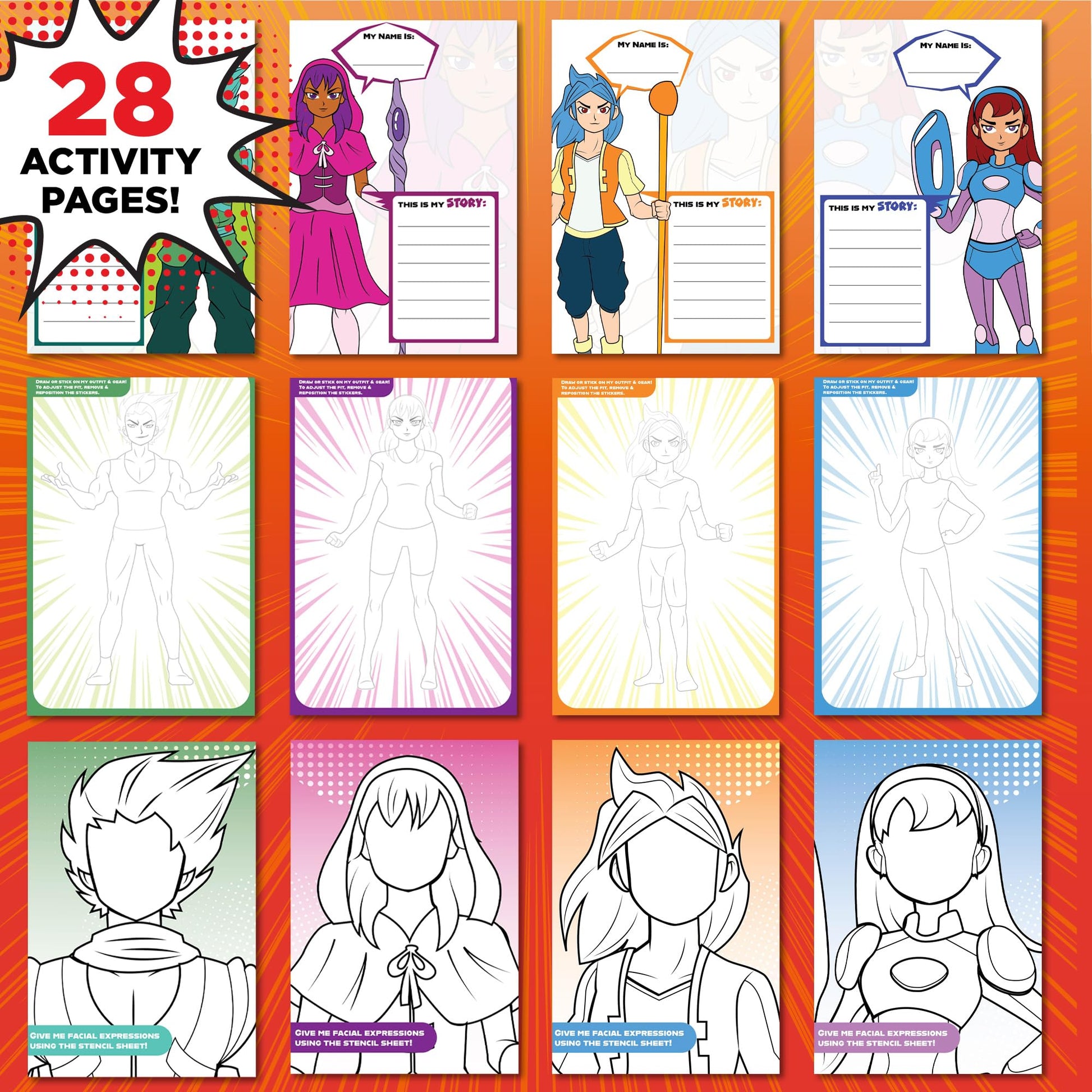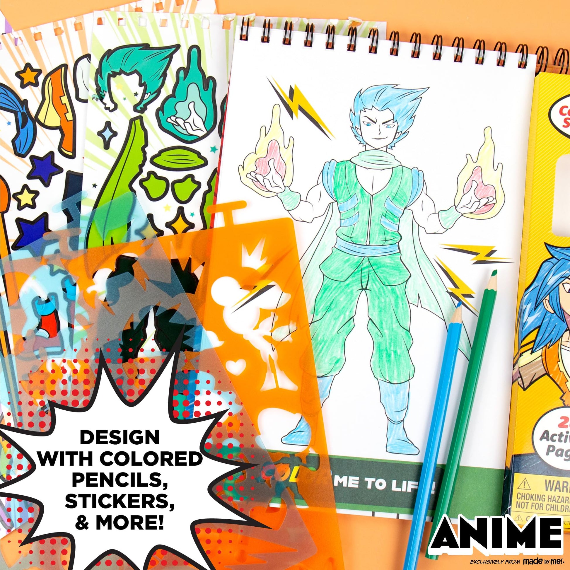 Made By Me Anime Artist Pad, 28-Page Coloring Book, Includes Fun Art Supplies & Removable Stickers Inspired by Comic Books, Grea