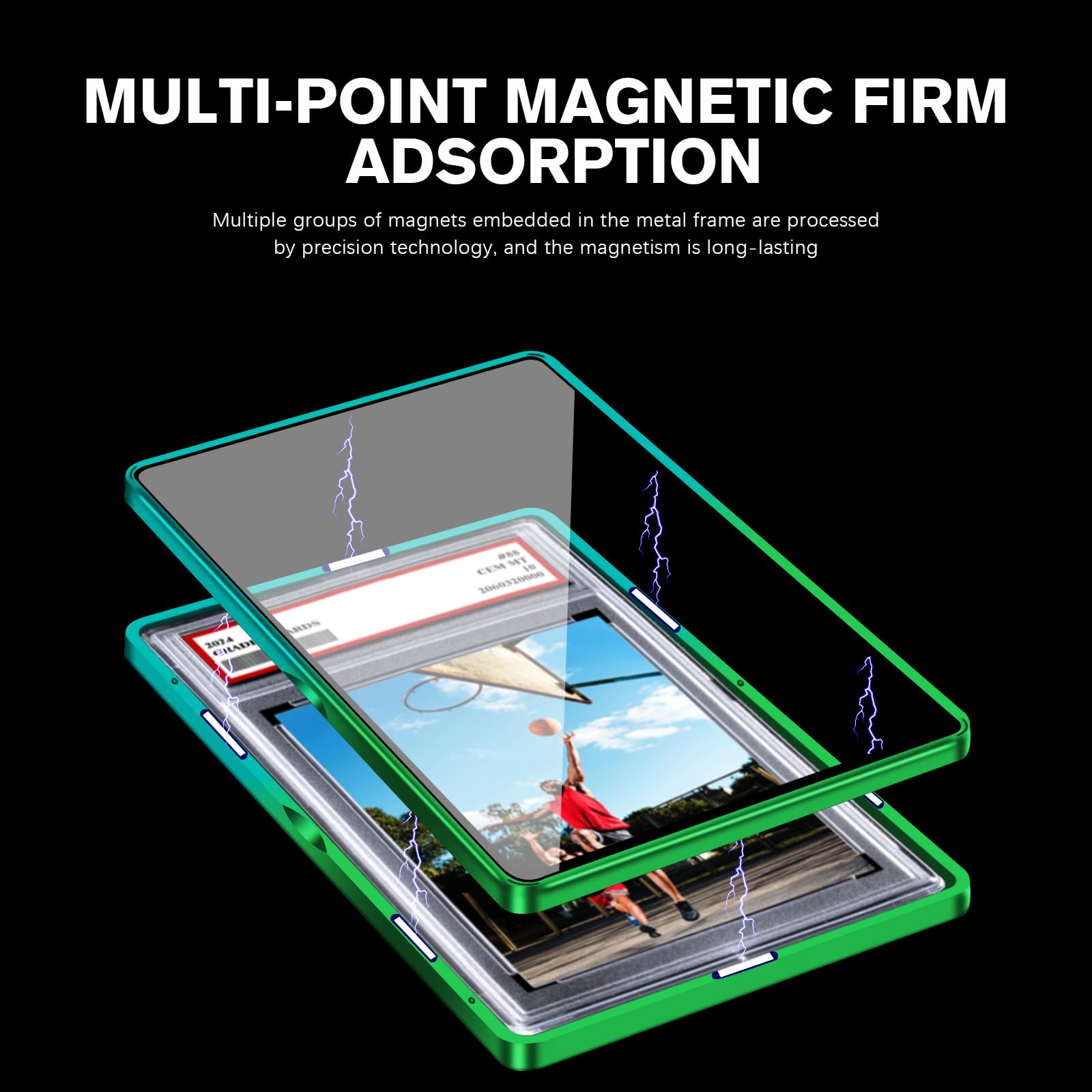 Magenetic Trading Card Slab Protector - enhanced Aluminum Graded Card Showcase Graded Slab Protector with UV-Resistant Tempered Glass Personalized Slab Bumper for Collectors Gradient green