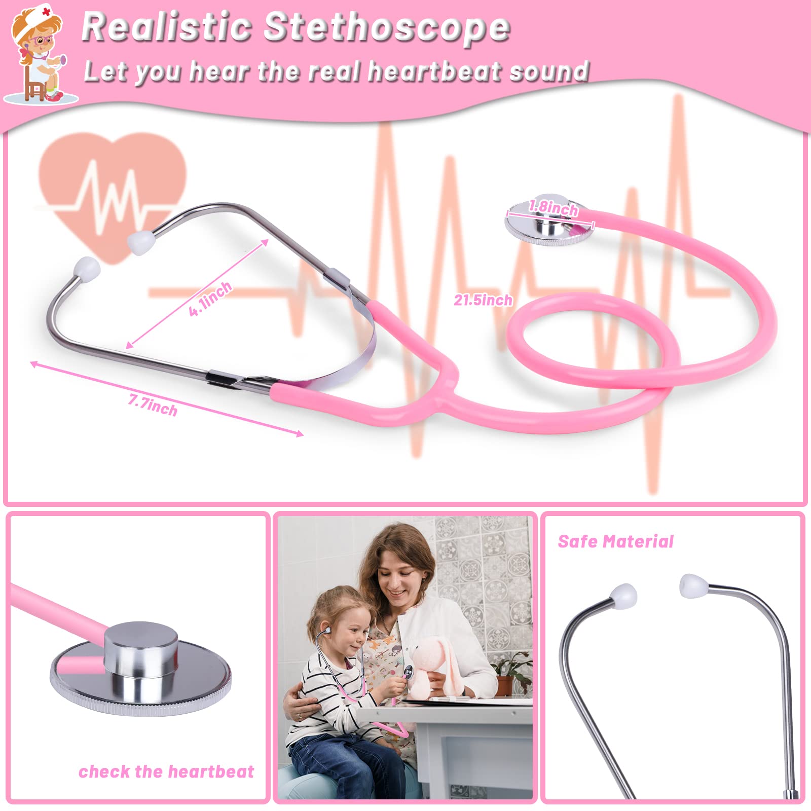 Magic4U Kids Doctor Costume Kit with Real Working Stethoscope and Carry Case, 34 Pieces Pretend-n-Play Realistic Medical Dr Toys Set for Toddler Boys Girls (Pink, 3-5yrs)