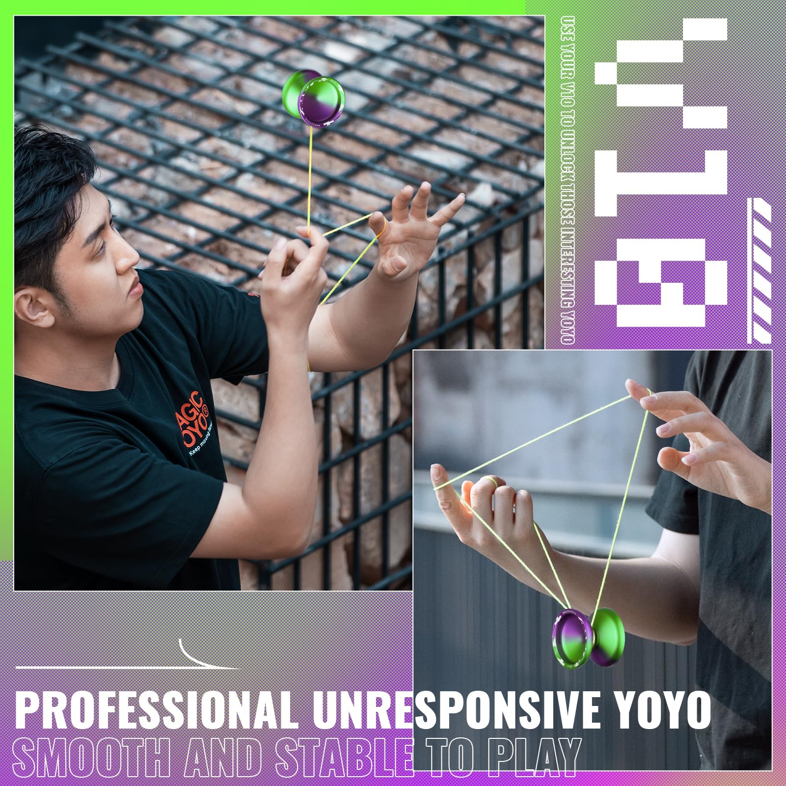 Magicyoyo V10 Black Blue Unresponsive Yoyo Professional Finger Spin Yoyo With 12 Yoyo Strings, Yoyo Case, Yoyo Glove(Purple Gree
