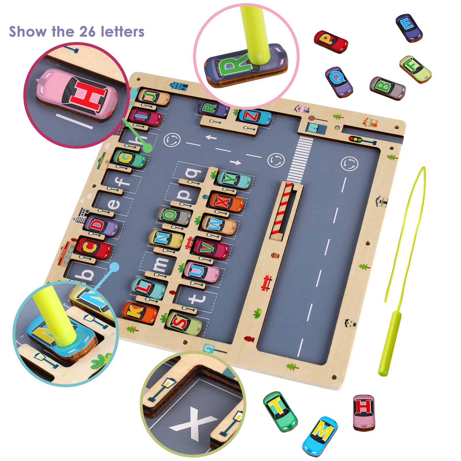 1. Magnetic Puzzle Board With Parking Lot Maze And Alphabet Letters;