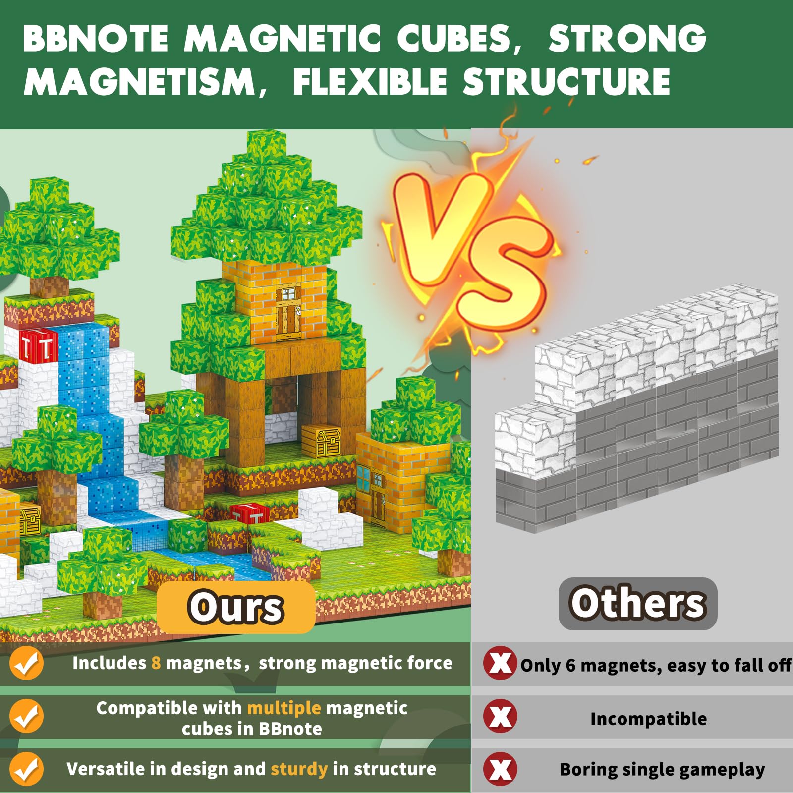 Bbnote Focuses On Developing Educational Toys All The Time. About Our Magnetic Building Blocks, Bbnote 54Pcs Magnet Blocks Contain 8 Magnets And Are Compatible. Children Can Learn Simple Graphics While Building Their Own Forest World. It Is A Puzzle Game Suitable For Families And Friends To Play Together And Enjoy Playtime. It Is A Educational Stem Toy. By Building Blocks, It Helps To Enhance Imagination, Hand Eye Coordination And Creativity, Improve The Cognitive Development. Packaging Size: 10.4'' L*1.4'' W*6.5'' H( 26.5 X 3.5 X 16.5 Cm ) Cubes Size: 0.98'' L*0.98'' W*0.98'' H( 2.5 X 2.5 X 2.5 Cm ) Suitable Age Group: 3+ Age Boys & Girls