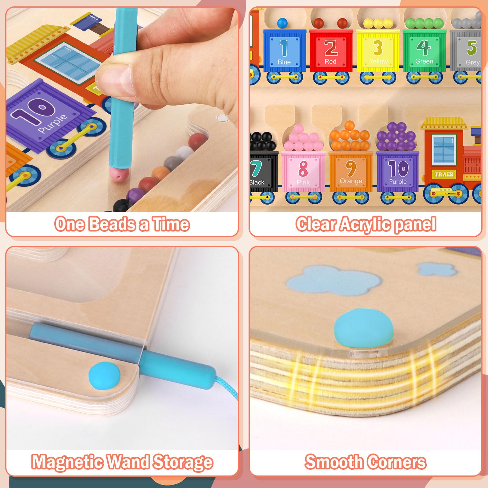 Magnetic Color And Number Maze Toy, Wooden Magnet Balls Puzzles Board, Fine Motor Skills Toddler Activities, Montessori Gift For Boys Girls 3-5 Years Old, Preschool Busy Board For Kids