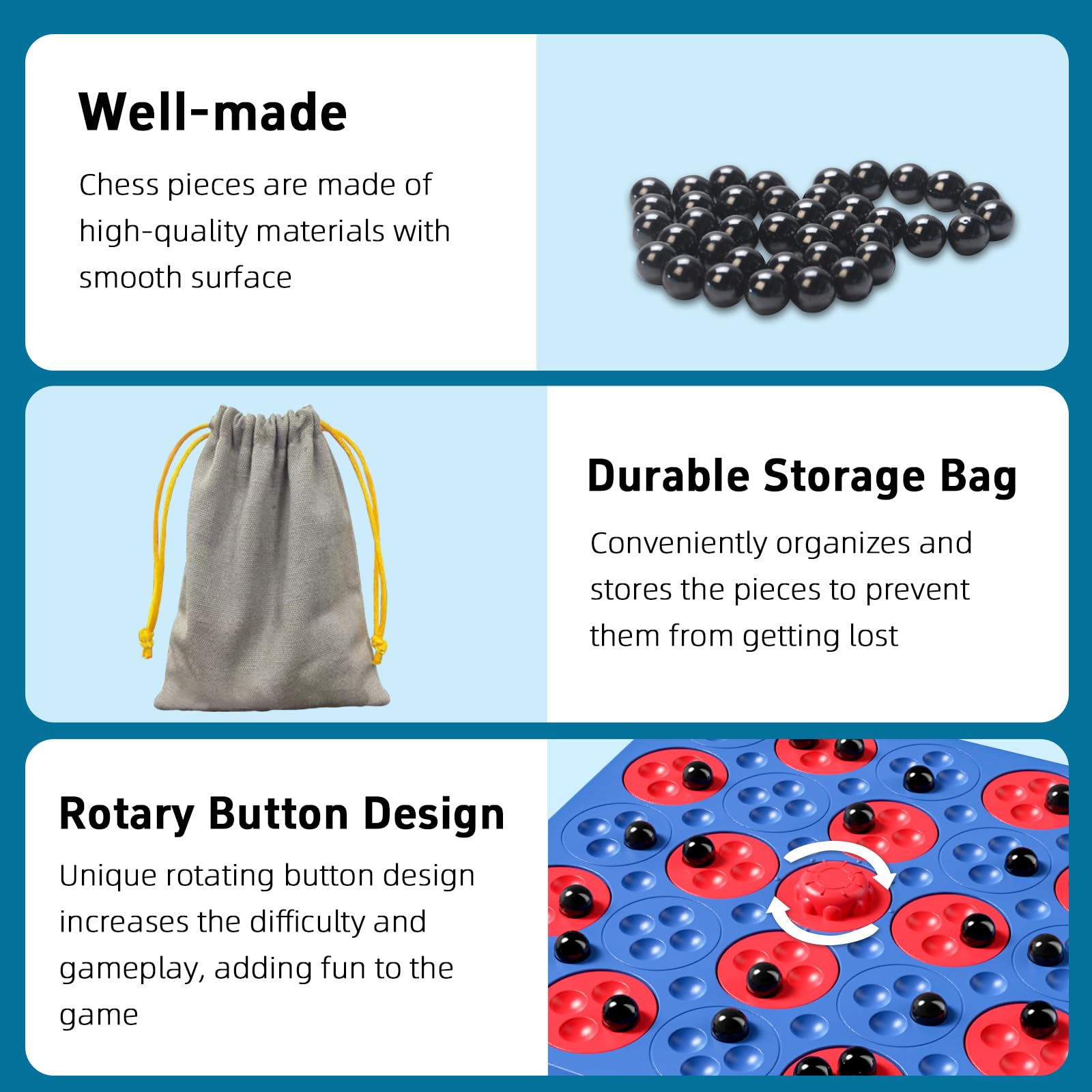 - Q: What are the unique features of the Magnetic Game Chess? A: This game offers two ways to play: a traditional magnetic chess game and a Connect-5 pieces game. The rotator design allows players to customize their gameplay, adding variety and fun.