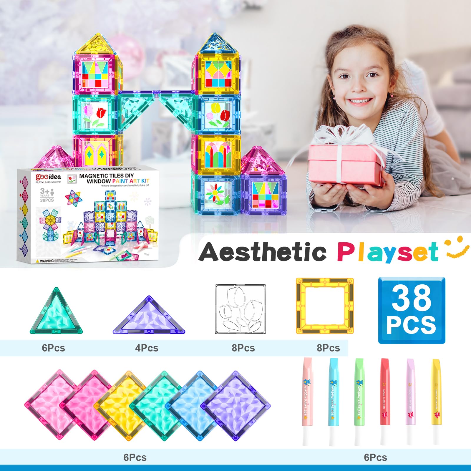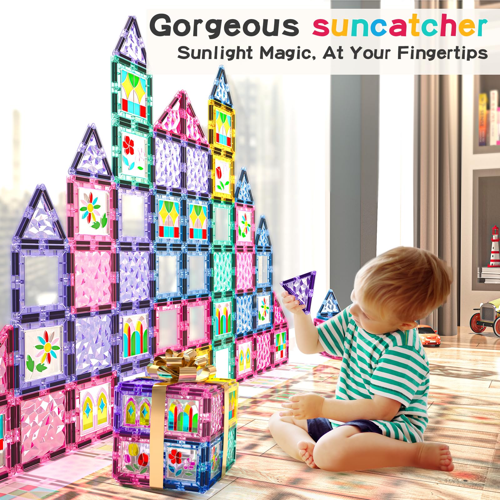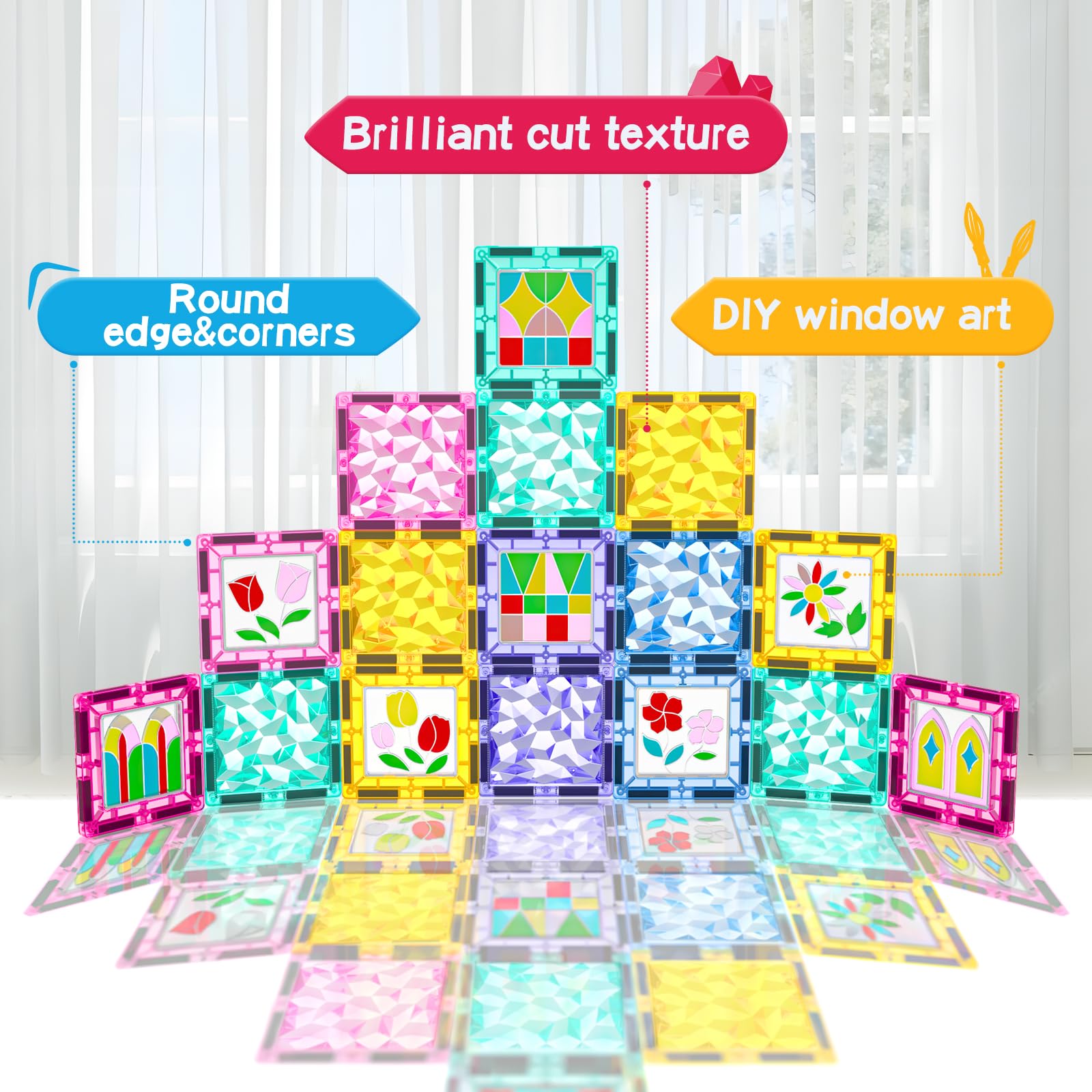 Magnetic Tiles Diy Window Arts And Craft Kit Kids Games Montessori Toys Toddler Kids, Magnet Building Blocks Set For Preschool Learning Classroom Stem Sensory Toys Gift For 3+ Year Old Boys And Girls