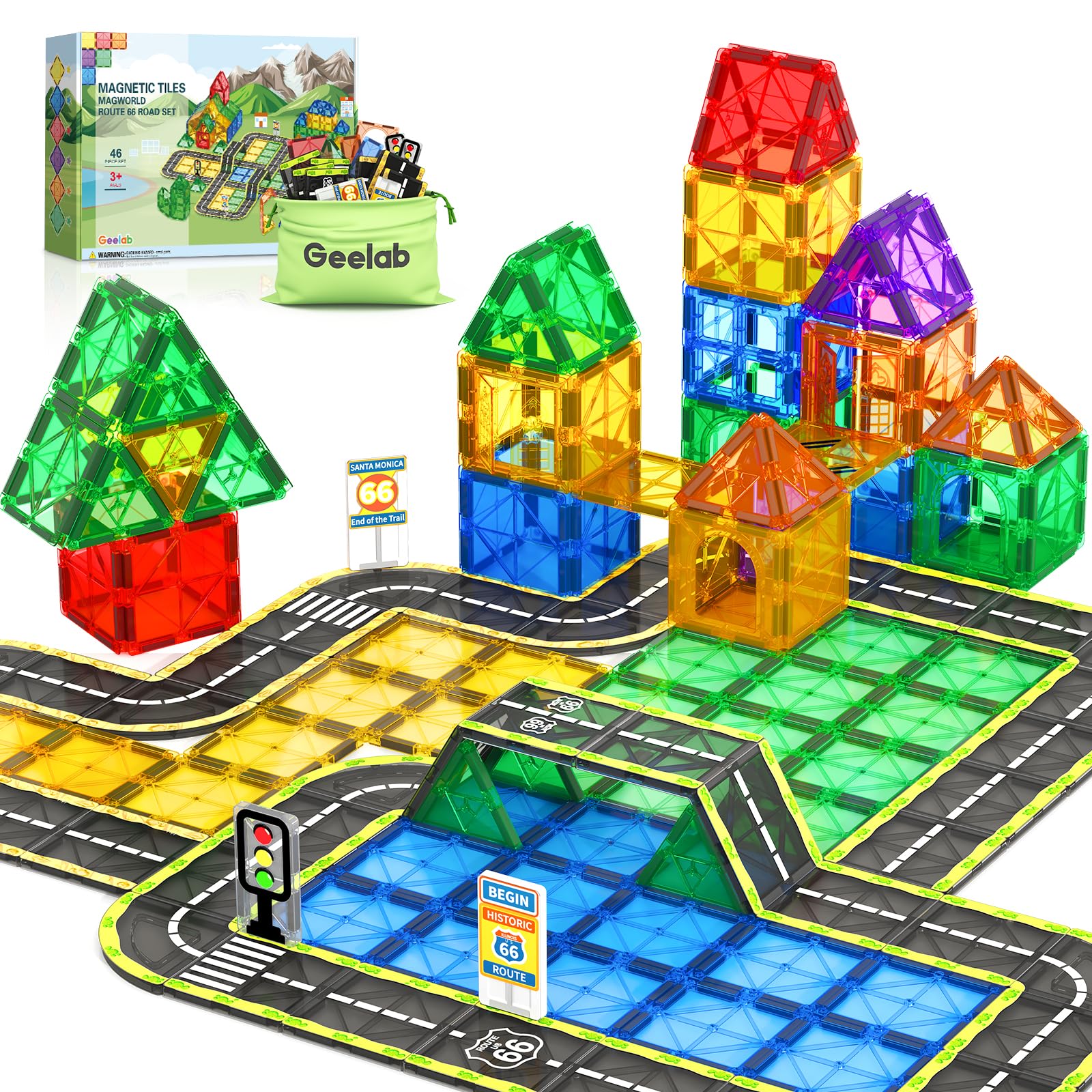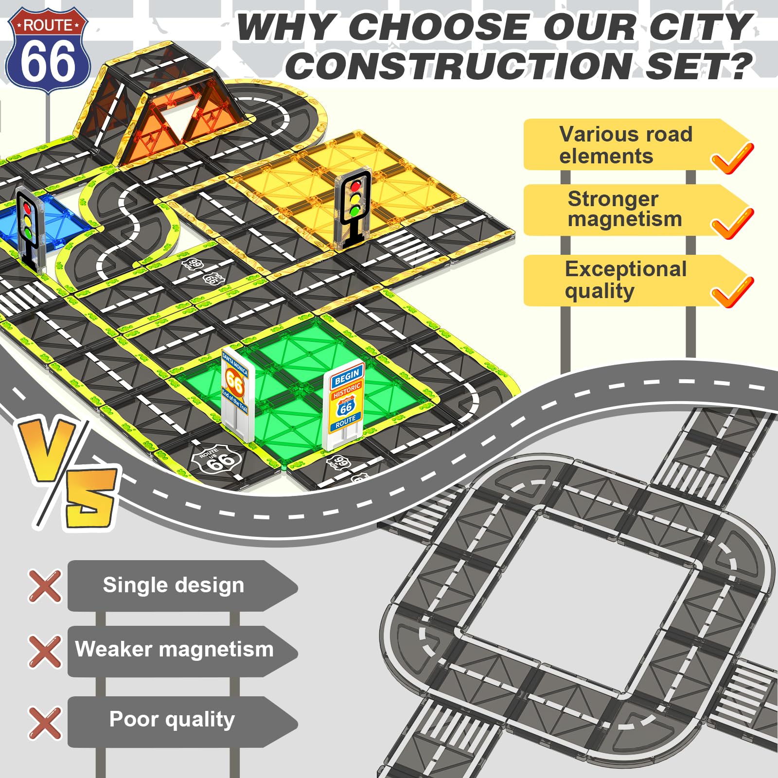 - Q: How can the Magnetic Tiles Route 66 Road Set enhance a child's learning experience? A: This road set not only provides fun but also stimulates creativity and imagination by allowing children to build different types of roads and explore the history of Route 66, fostering cognitive and sensory development.
