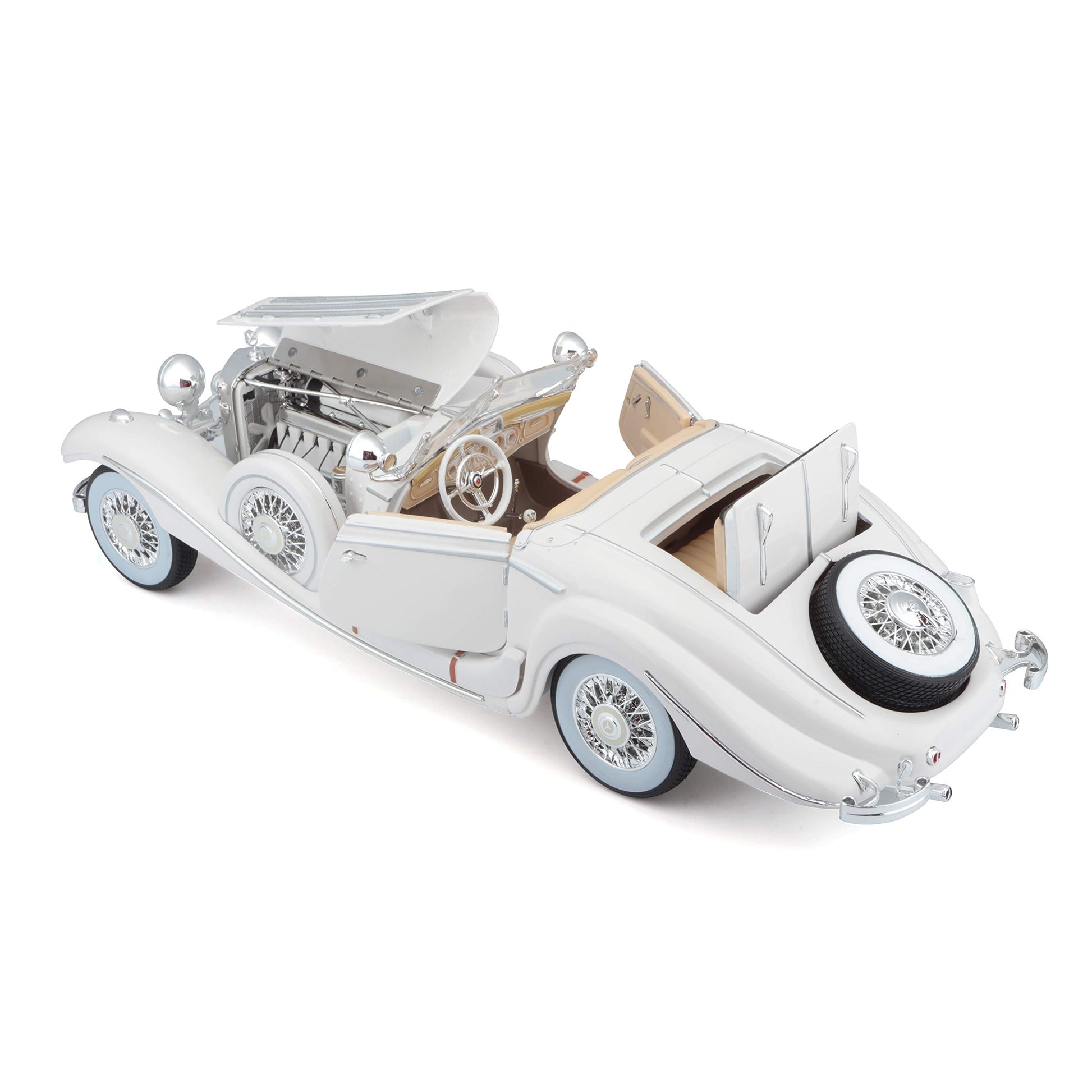 Product DescriptionGreat ProductFrom the ManufacturerAs far as collectable die-cast vehicles are concerned, Maisto’s Premiere Edition 1:18 scale line is the absolute gold standard. These vehicles are meticulously engineered, and boast highly detailed die-cast metal bodies with plastic parts. Ultra-realistic opening doors, hood or trunk on most styles. Also comes with full function steering, four wheel suspension, and detailed chassis with separate exhaust system. All models come complete with display stand and Maisto Showroom Display packaging. Maisto continues to bring you only the finest licensed vehicles, including the pictured 1936 Mercedes-Benz 500 K Typ Special roadster.