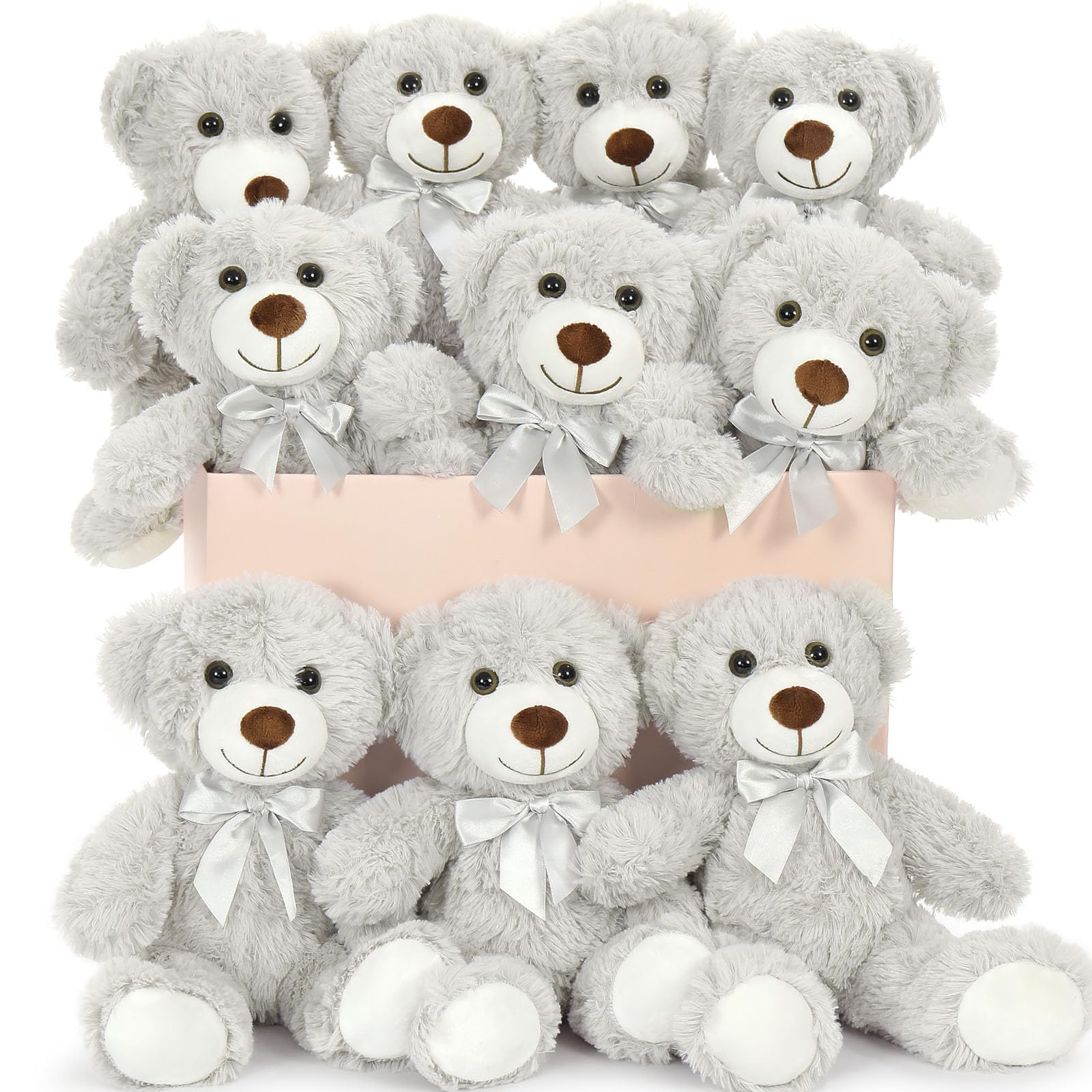 Maogolan Bulk Teddy Bear Baby Shower, 10 Packs Small Gray Teddy Bear Stuffed Animals In Bulk,13.5' Small Stuffed Bears Plush For Wedding,Birthday,Christmas, Party Decorations