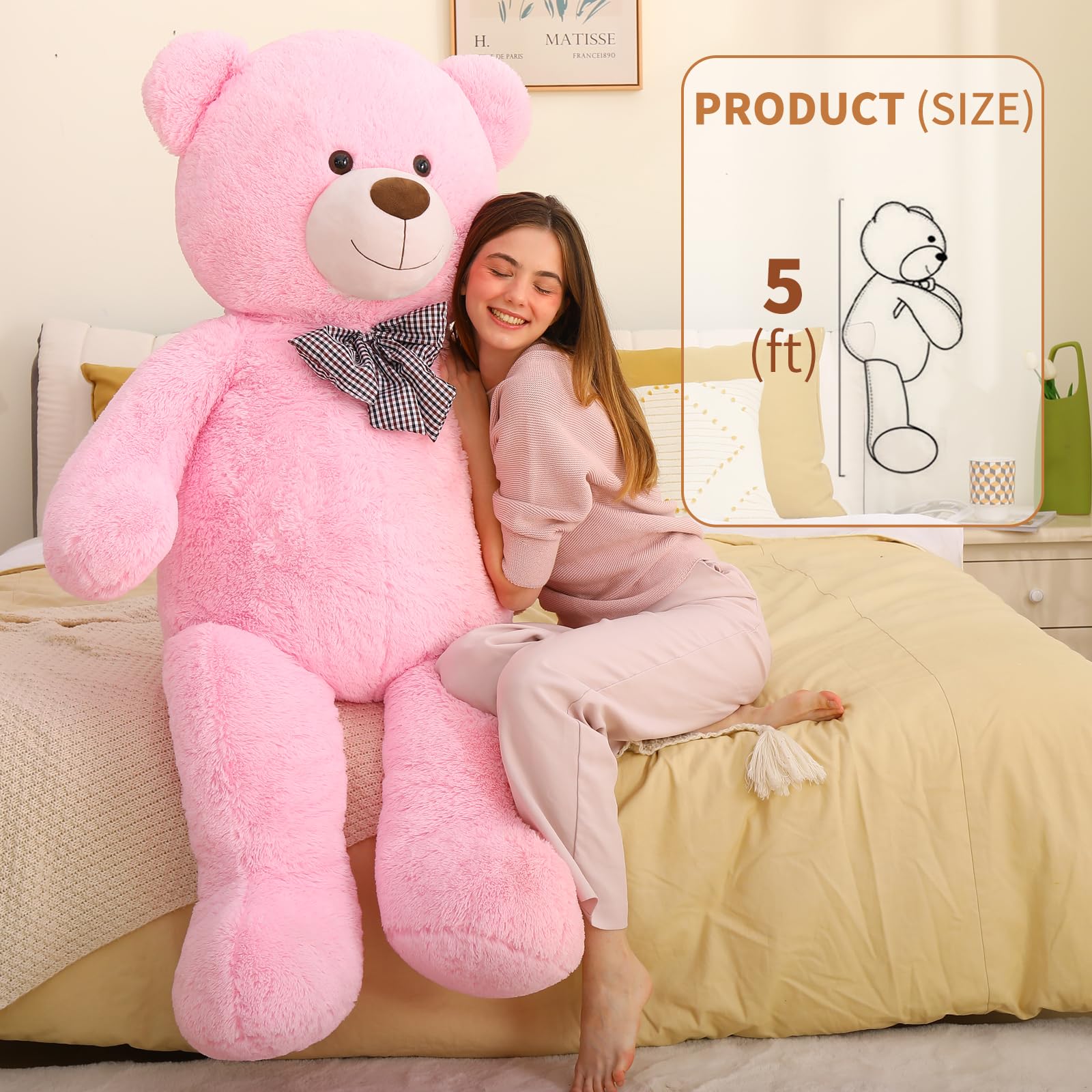 Maogolan Giant Pink Teddy Bear Stuffed Animal 5 Feet,Soft Cuddly Smiling Face Big Teddy Bear Plush Gift For Boyfriend Girlfriend