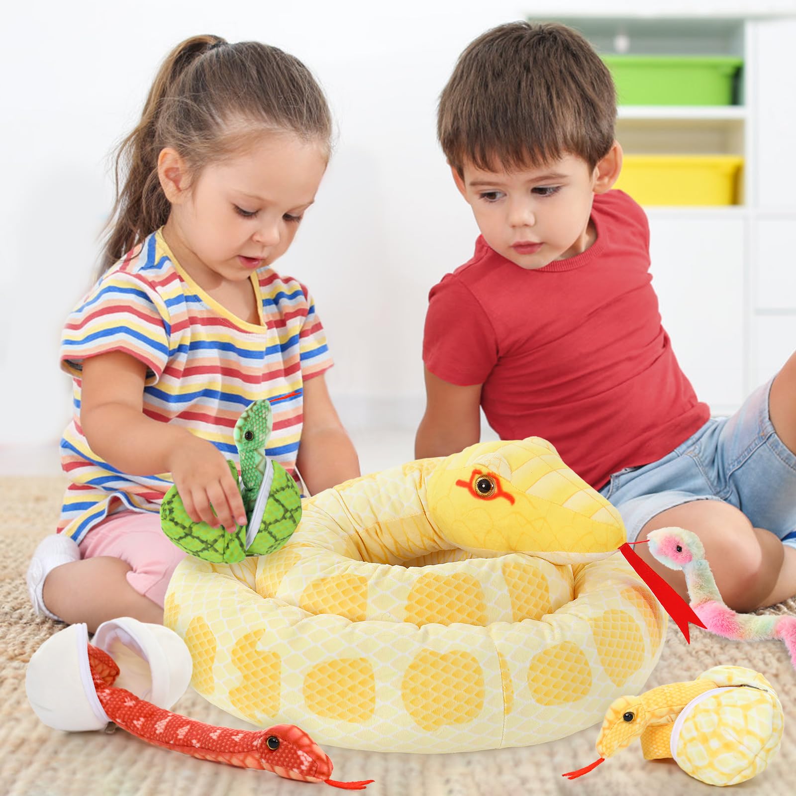 Maogolan Giant Snake Stuffed Animal, Realistic Large Mommy With 4 Babies & 2 Eggs Snakes Plush Toy, 118 ' ' Long Yellow Boa Cons