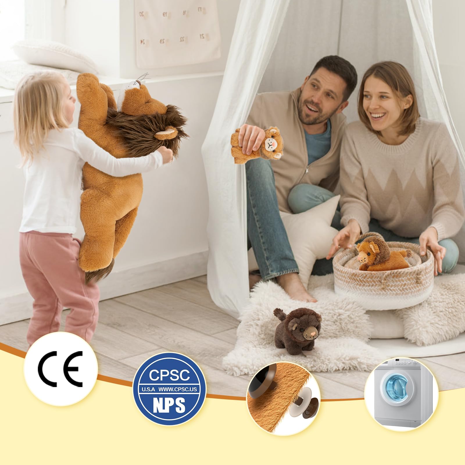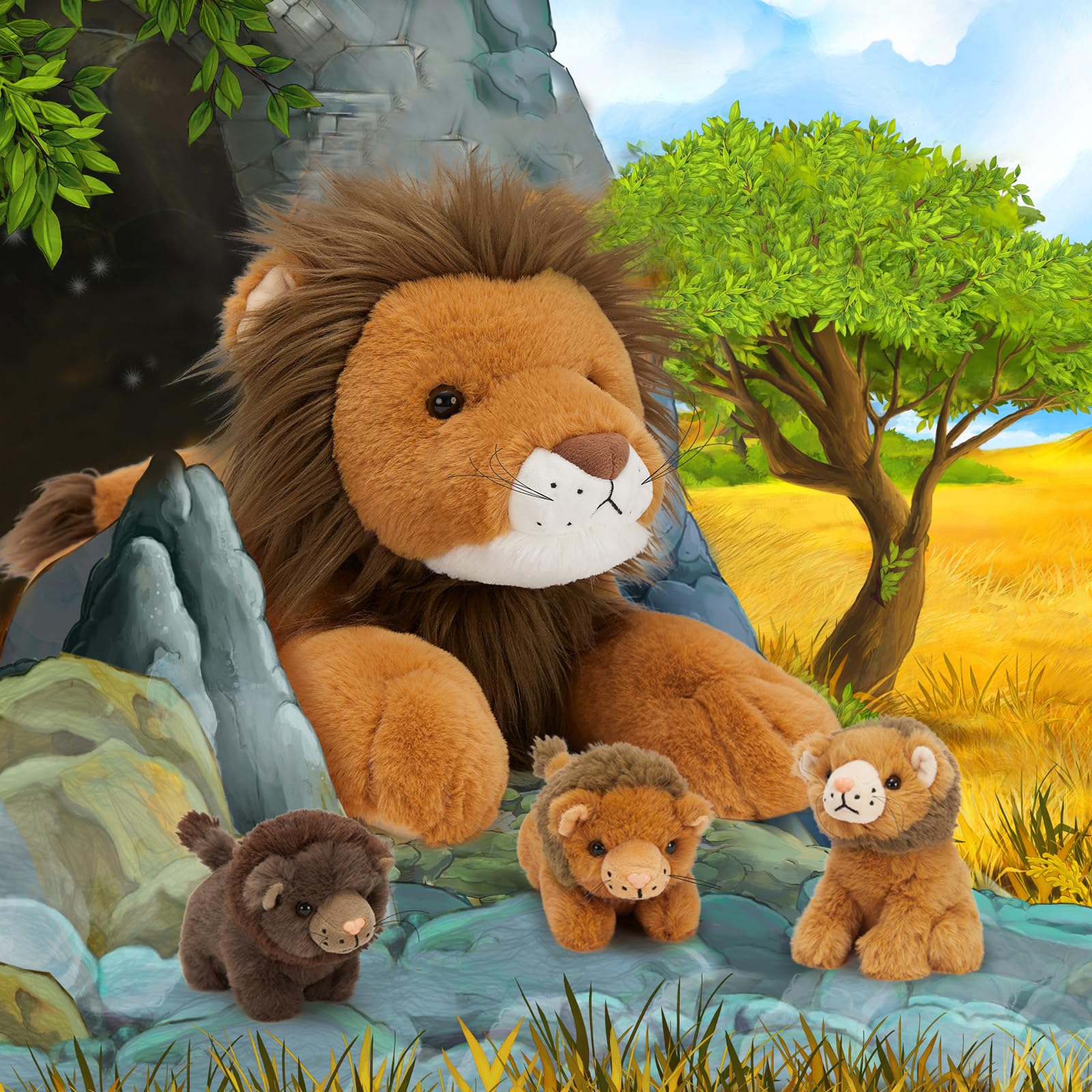 Maogolan Lion Stuffed Animal Set,Big Lion Plush With 3 Babies Inside,4 Pcs Stuffed Lion Toy For Kids,Birthday Decor