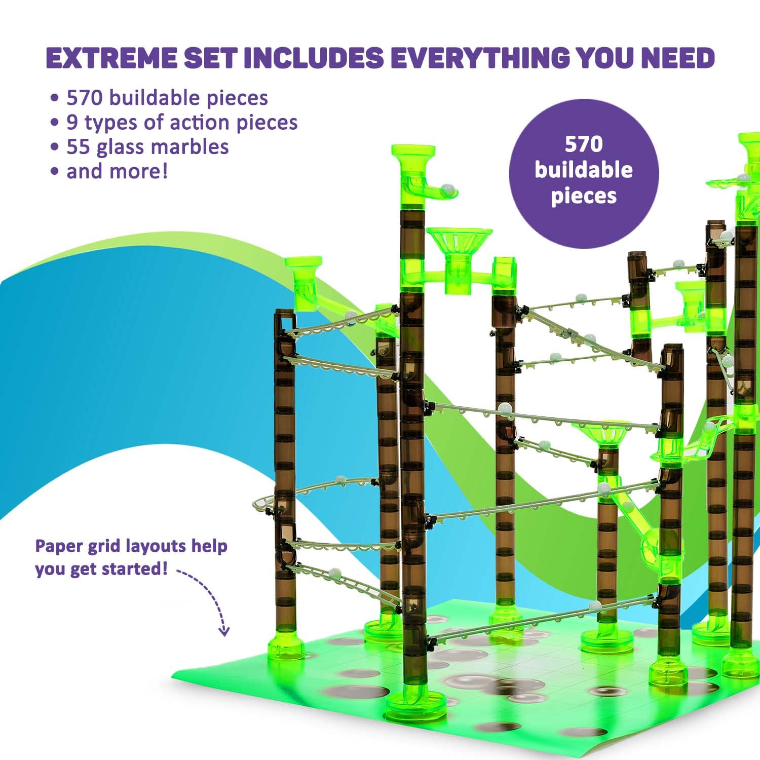 Marble Genius Marble Rails Extreme Set, 625 Piece Marble Run For Kids 8+ (55 Marbles, 80 Rail Pieces, 20 Base Pieces & More), Stem, Full-Color Instructions, Great For Kids & Teens