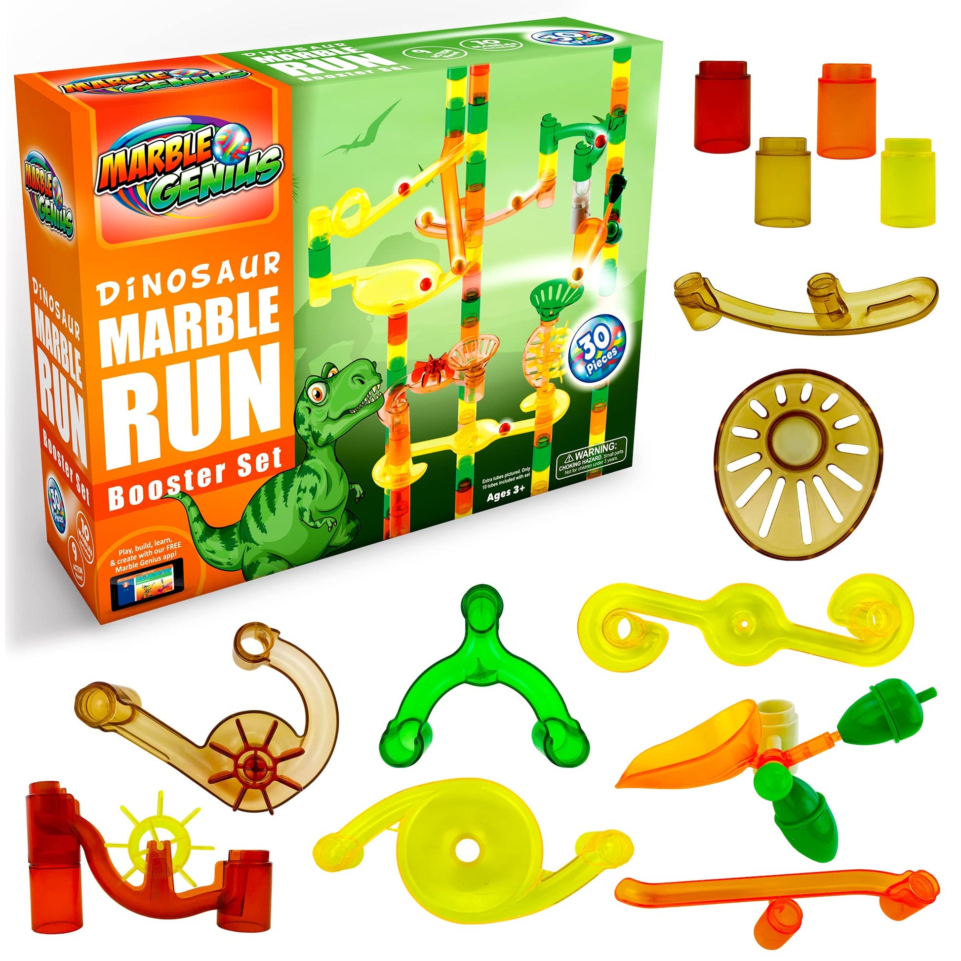 Marble Genius Marble Run Booster Set - 30 Pieces Total (10 Action Pieces Included), Construction Building Blocks Toys For Ages 3 And Above, With Instruction App Access, Add-On Set, Dinosaur