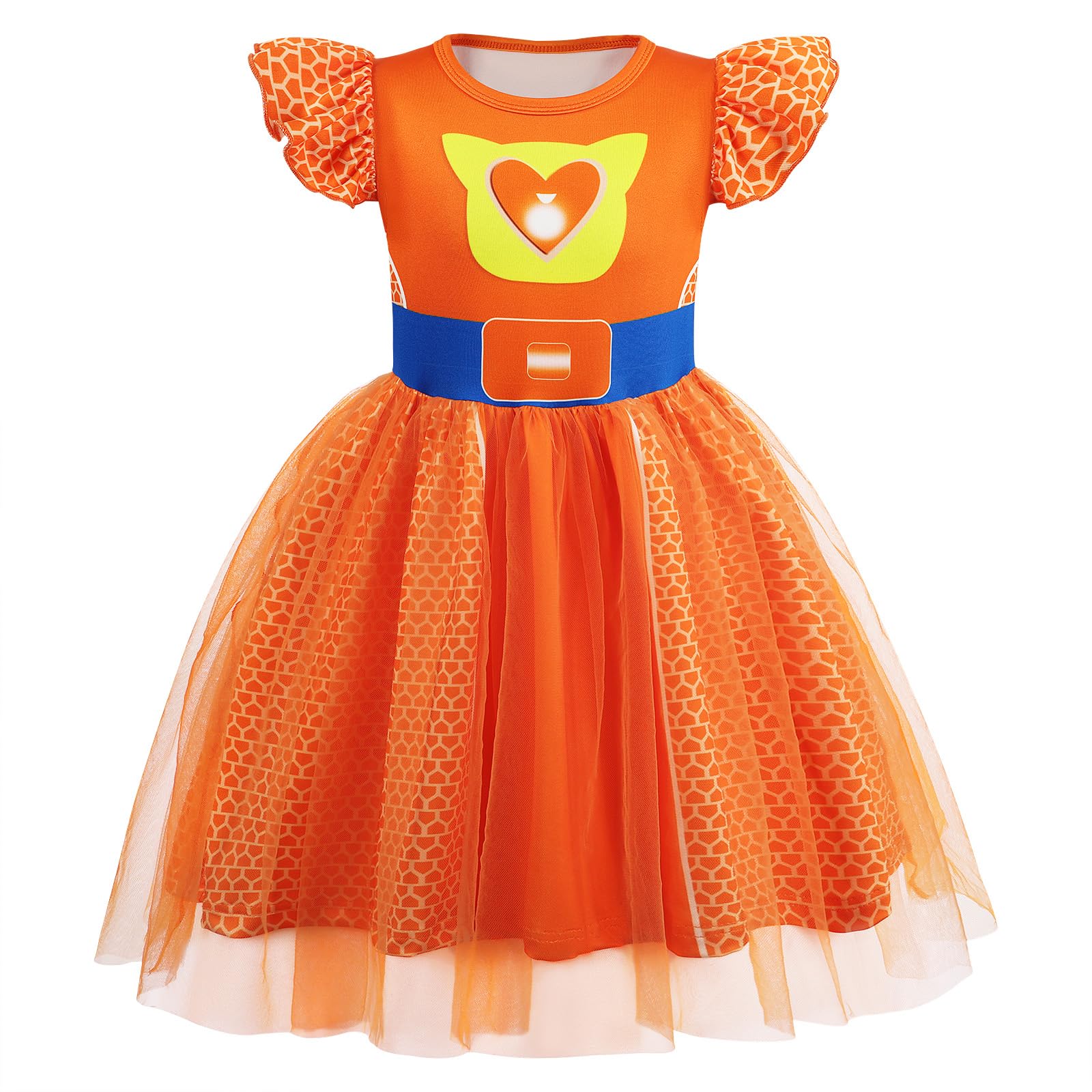 Marendyee Kitties Costume for Girls Kids Halloween Cosplay Outfit Tulle Mesh Dress Flutter Sleeve