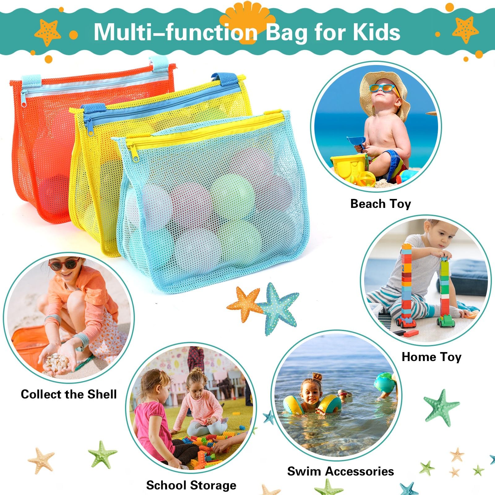 MARFOREVER 3 Pack Beach Toys Mesh Beach Bag Seashell Bag Sand Toy Shell Collecting for Holding Shells Swimming Pool Storage with