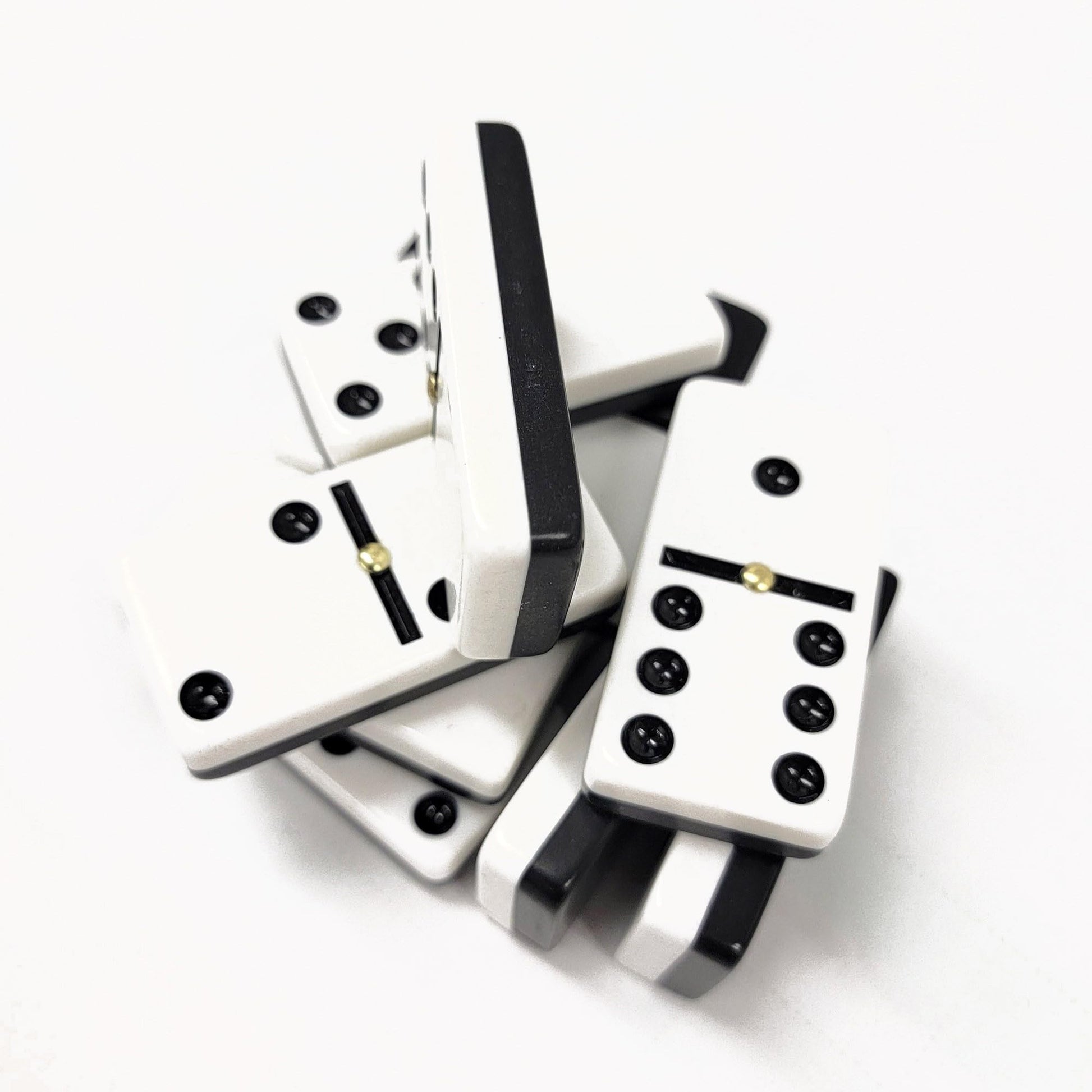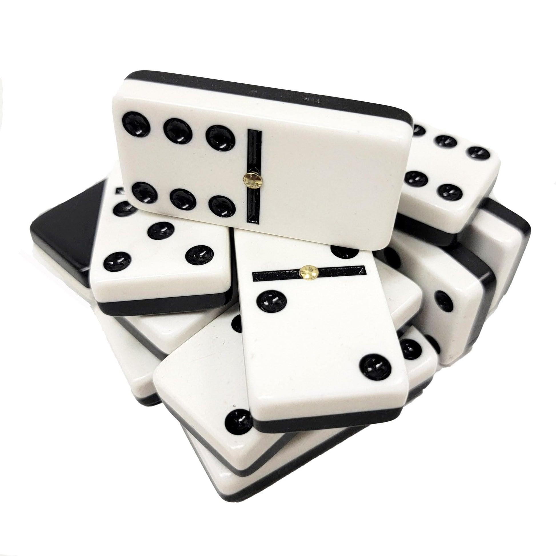 View compareMarion Domino Double 6 Black & White Two Tone Jumbo Tournament Professional Size With Spinners In Elegant Black Velvet Case.