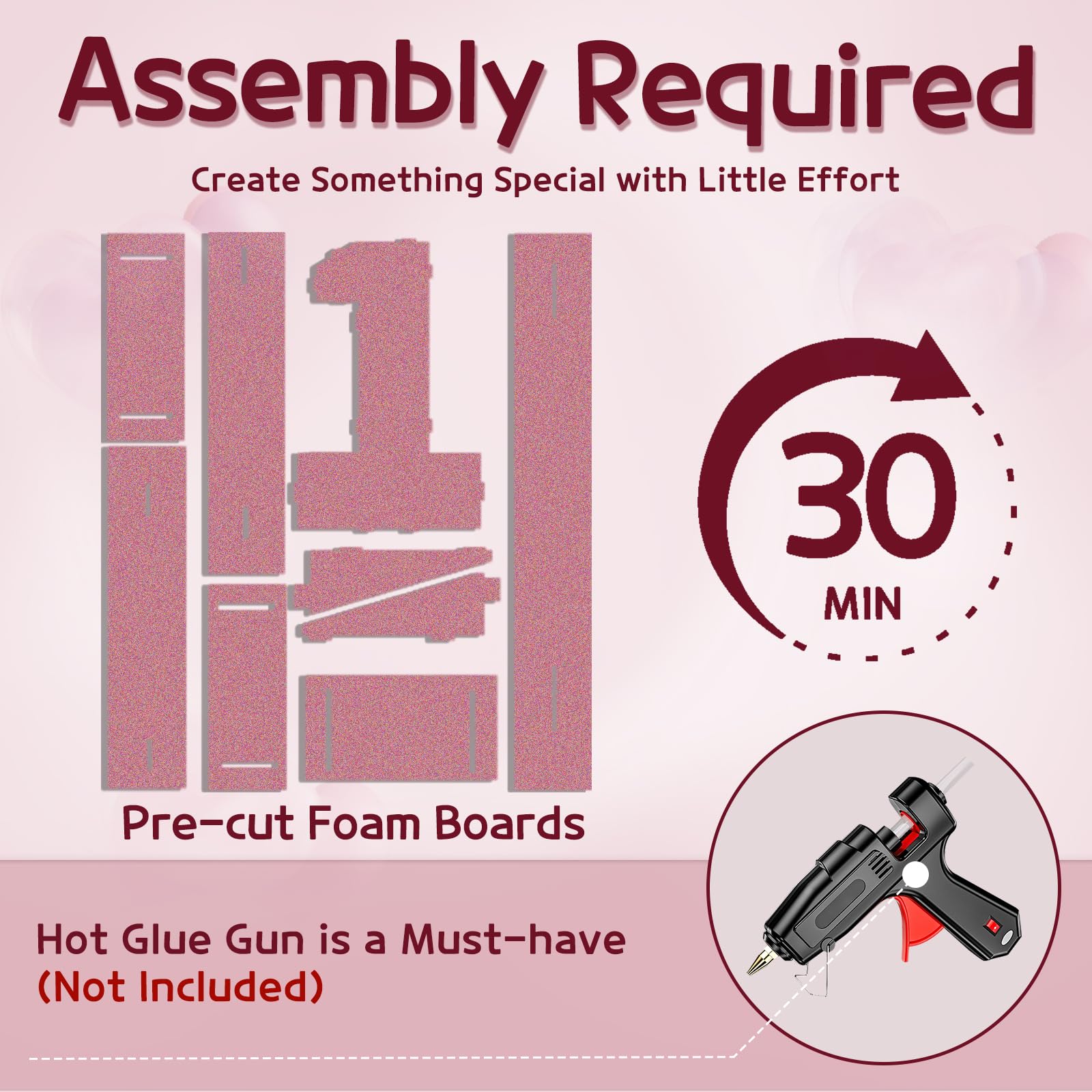- Q: Do I need any additional materials for assembly? A: Yes, a hot glue gun is required for assembly. Please note that the package does not include a hot glue gun, so make sure to have one on hand to complete the setup.
