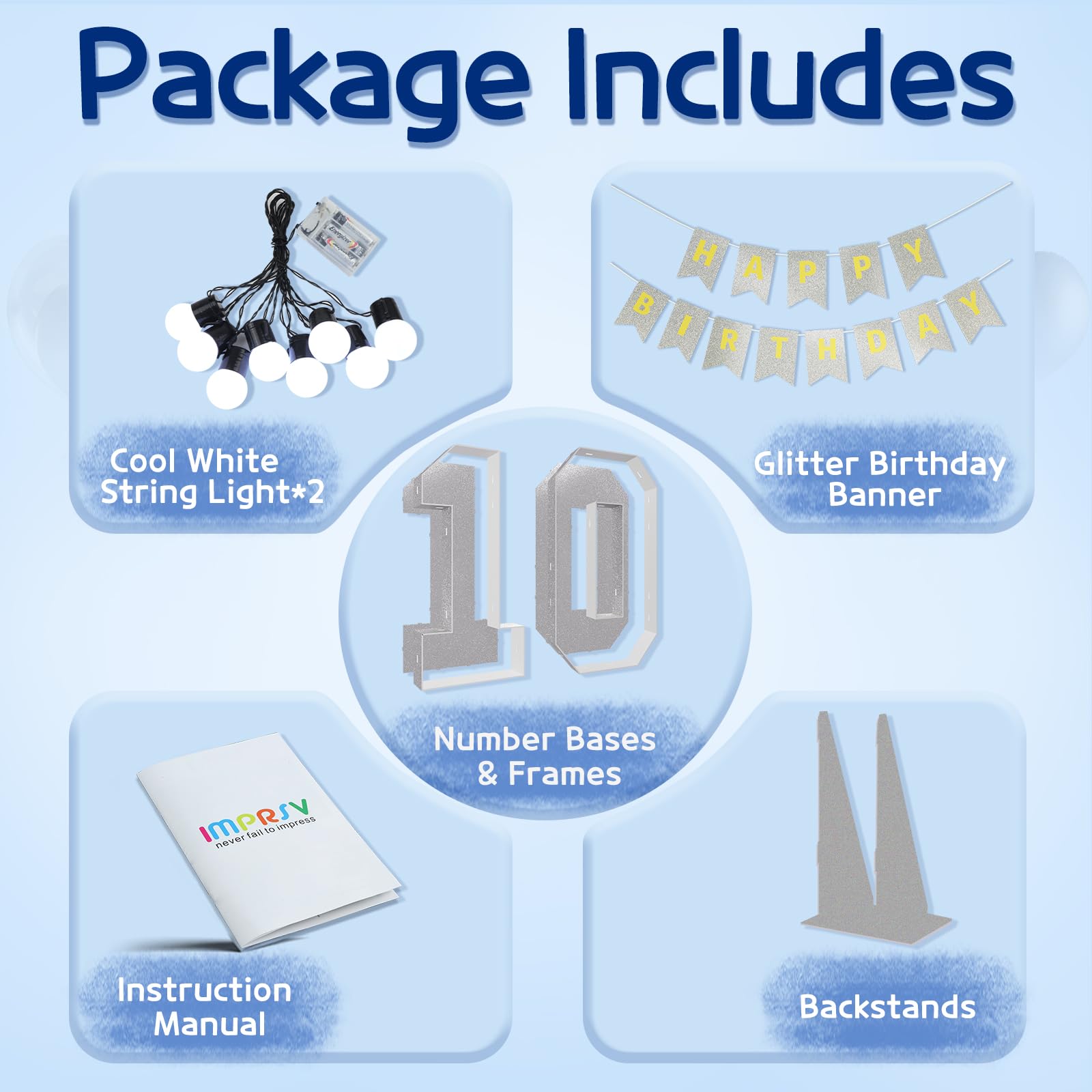 - Q: What materials are the marquee numbers made of? A: The marquee numbers are made from foam board, which is lightweight yet sturdy, making them easy to assemble and display at your birthday party.