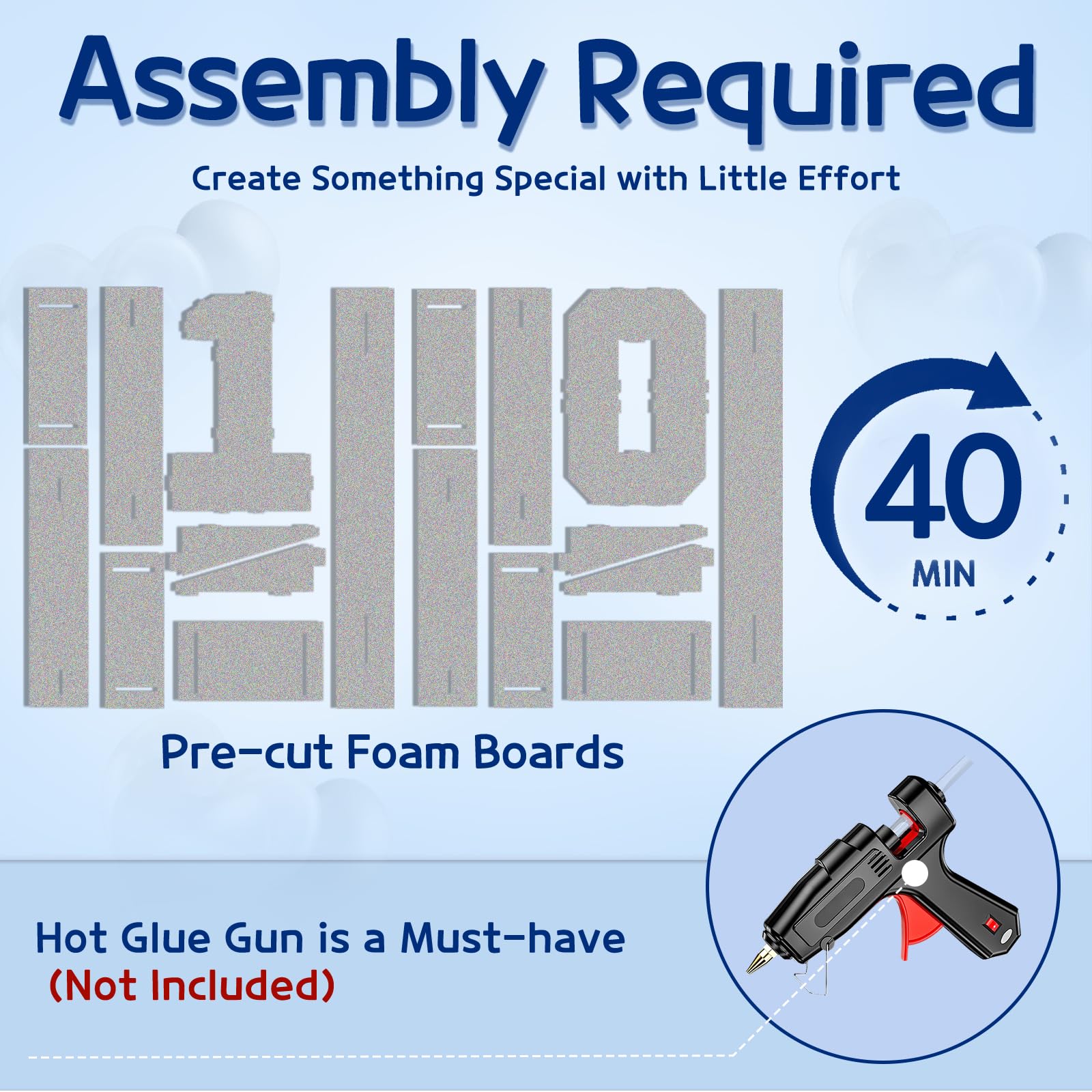 - Q: Do I need any special tools to assemble the marquee numbers? A: Yes, a hot glue gun is required for assembly. Please note that the package does not include a hot glue gun, so make sure to have one on hand before you start putting the numbers together.