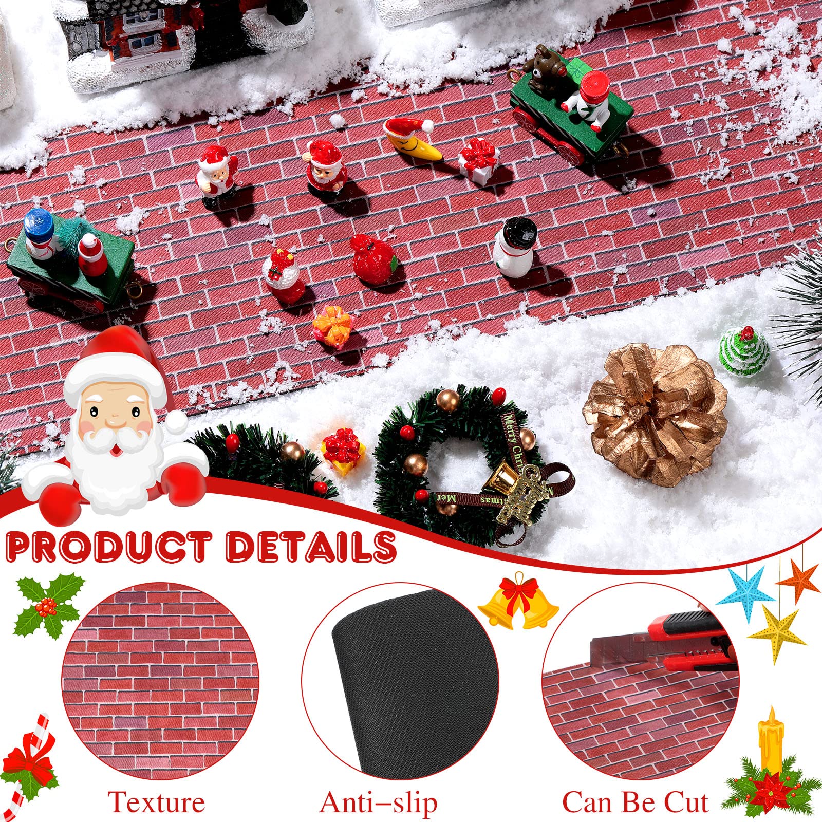 Features: Lovely gift: This houses village mat is not only suitable for decoration, but also can be given to friends, family, neighbors and colleagues. They can use it to decorate their own mini garden and family gatherings. They will be happy to receive gifts. Beautiful decorations: The street mat design is lovely, beautiful and generous. It is suitable for creating a beautiful decorative environment for small villages and creating a happy winter atmosphere. Specifications: Material: plastic and fabric materials Color: as the picture shows Size: 5 x 50 inches Package includes: 1 x Street mat Notes: Manual measurement, please allow slight errors on size. The color may exist slight difference due to different screen displays.