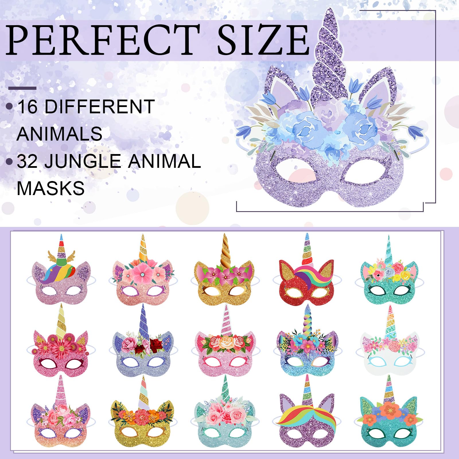 Marsui 32 Pcs Unicorn Monster Safari Animal Face Masks For Kids Cartoon Masks For Animal Birthday Party Decorations(Unicorn)