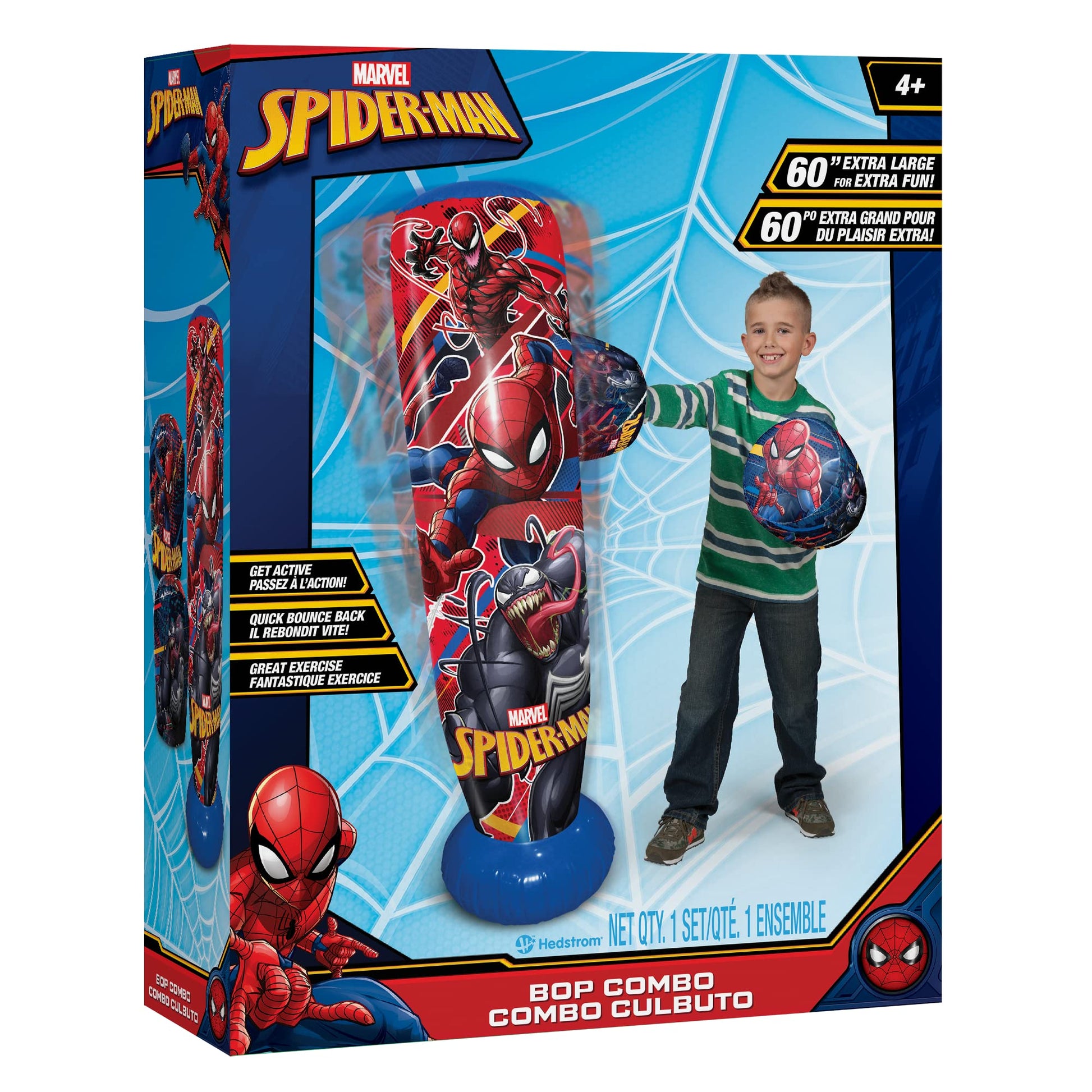 - Includes one 60-inch tall inflatable Bop Bag featuring Spider-Man graphics.