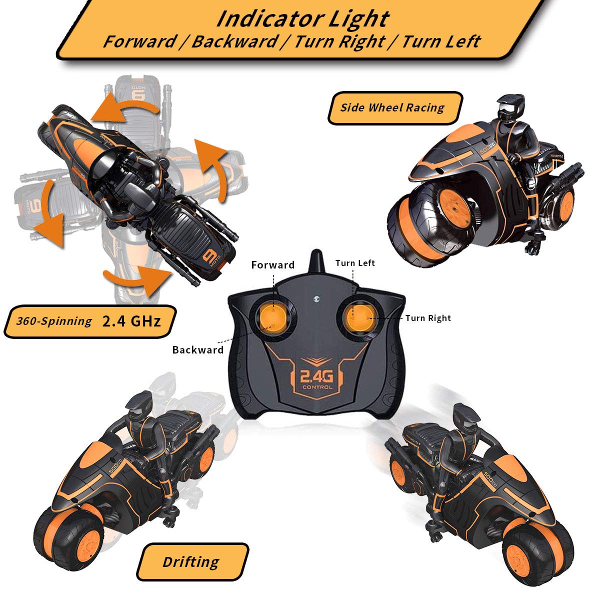 View compareMasefu RC Motorcycle, RC Motorcycle 360 Spinning Wheels Stunt Motorbike - Rotating Drift 2WD High Speed Car Toys with Riding Fig