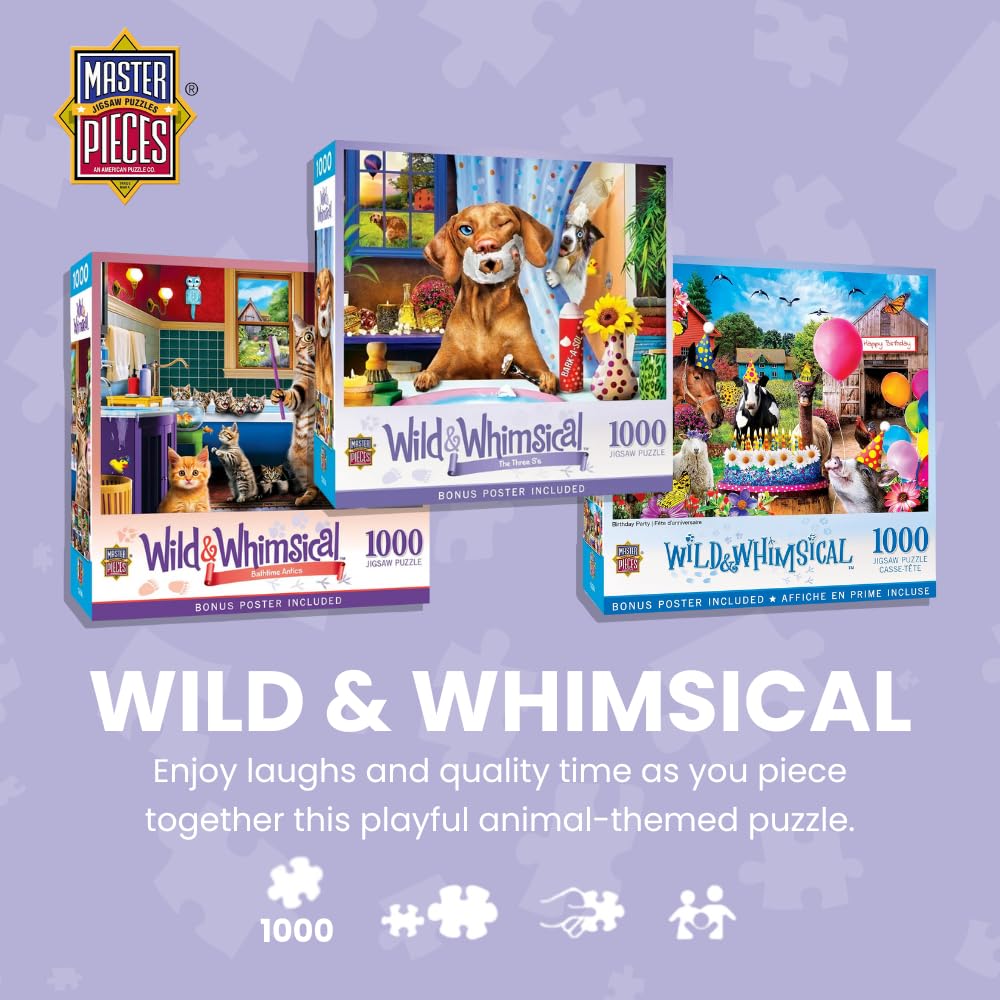 Experience the fun of piecing together this wild and whimsical animal-themed puzzle from MasterPieces. With 1,000 uniquely shaped, interlocking pieces and a matte finish to reduce eye strain, it provides the perfect balance of entertainment and challenge. Ideal for family gatherings or solo relaxation, this puzzle comes with a vibrant full-color poster for easy reference. Made from 100% recycled materials and printed with non-toxic soy-based inks, this puzzle ensures hours of stimulating, screen-free entertainment.