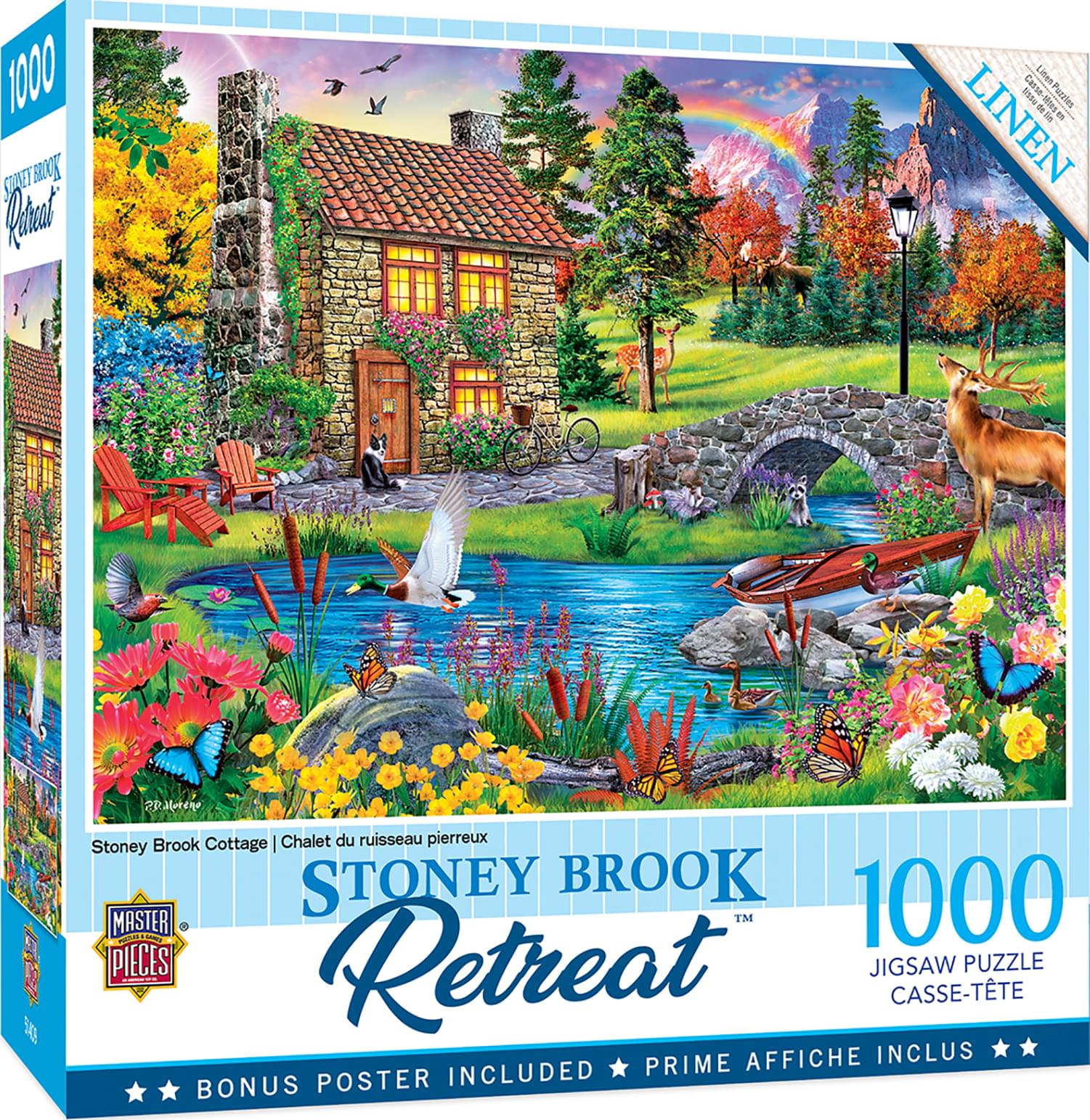 - Q: Does the puzzle come with any additional aids? A: Yes, the MasterPieces Stoney Brook Cottage jigsaw puzzle includes a bonus poster that provides a large and detailed view of the image, assisting puzzlers in solving the puzzle.