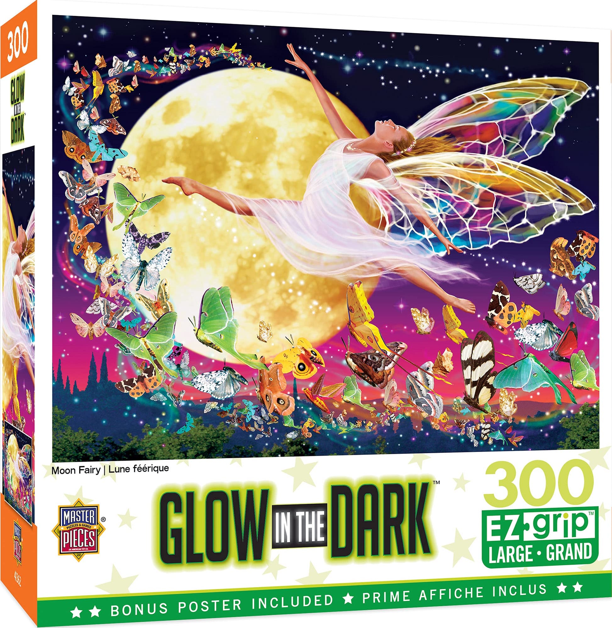 Masterpieces - 300 Piece Jigsaw Puzzle With Large Ez Grip Shapes, Glows In The Dark, Moon Fairy, Activity Fun For Adults, Seniors, Family, Kids, 18' X 24'