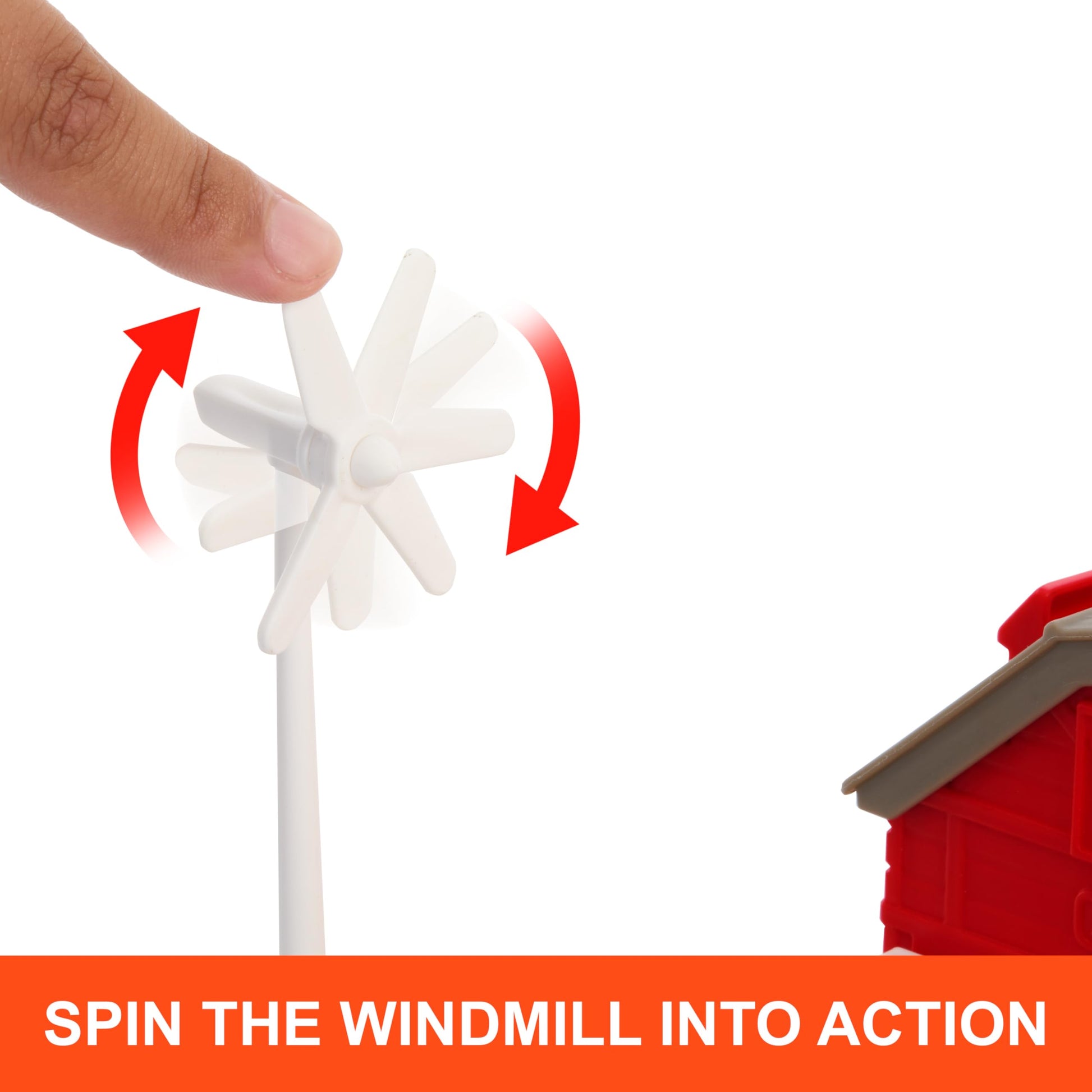 Come on down to the Matchbox farm where the crops are ready for harvest and the animals need to be fed. This realistic playset includes kid- and car-activated features and true-to-life sounds like a rooster crowing for enhanced storytelling. Kids drive the 1:64 scale tractor to plow the fields, tend to the livestock and deliver hay bales, while activating real farm sounds. Three detachable animal figures-- horse, goat and cow - and additional accessories like hay bales and a trailer broaden the storytelling possibilities. Makes a great gift for kids 3 years old and up. Colors and decorations may vary.