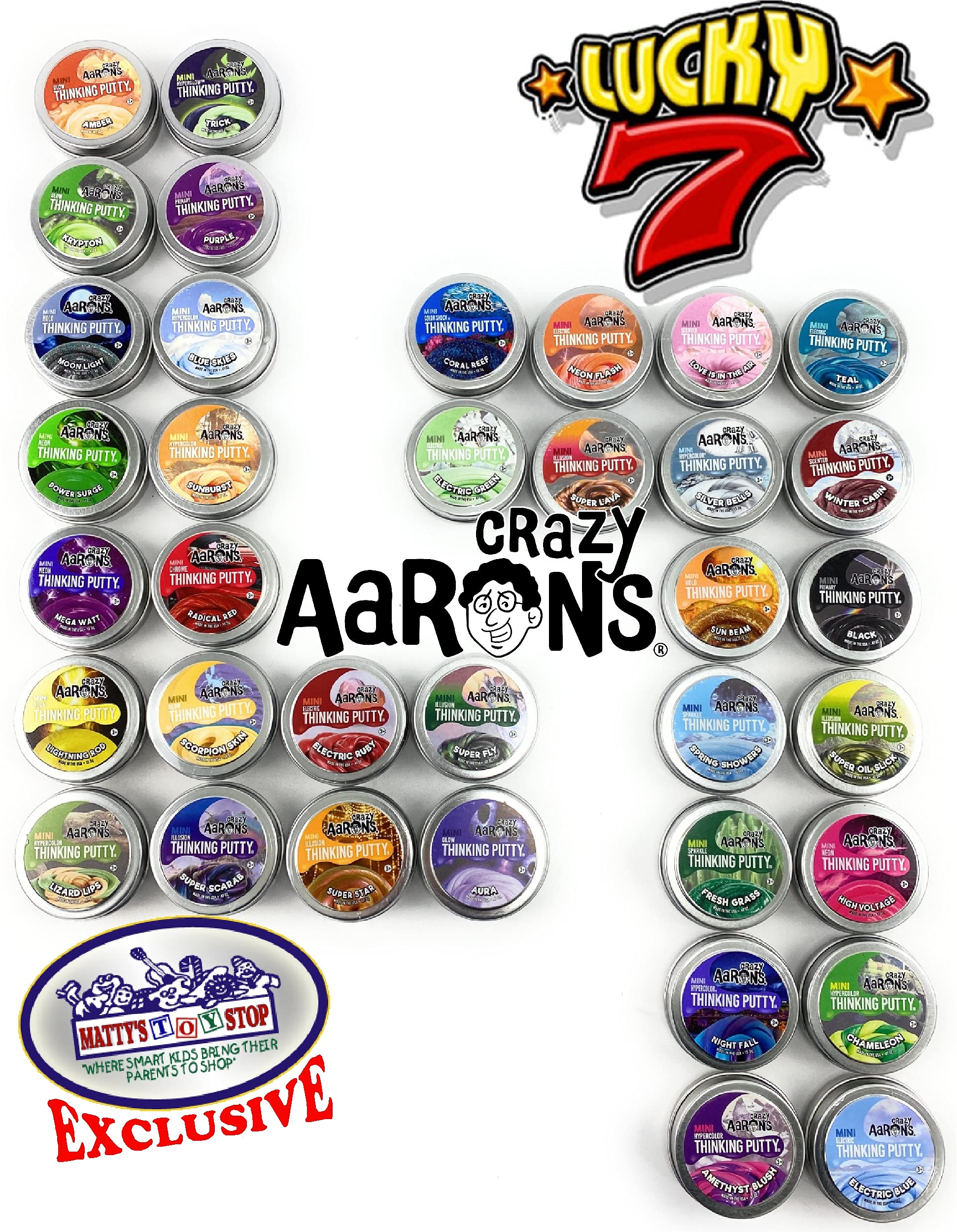 Crazy Aaron'S Putty Mini Tins Lucky 7 Surprise Gift Set Party Bundle - 7 Pack (.47Oz Each) Assorted Colors, Is Awesome! Unlock The Mystery....Open Package To Reveal Which Amazing Putties You Received! Set May Include Any Combination Of Crazy Aaron Mini Tins! This Set Is Ideal For Party Favors, Special Needs, Stocking Stuffers, Schools And So Much More! Made In The Usa Of Non-Toxic Silicone, Never Dries Out & Is Easily Removed From Solid Surfaces. Gluten Free, Latex Free And Amazing For Special Needs, Party Favors & Much More! This Bouncing, Stretching Phenomenon Can Be Squeezed, Kneaded, Snapped, Stretched, And Popped. Thinking Putty Builds Hand And Finger Strength Through A Fabulous Tactile Play Experience With Unique, Unexpected Properties And Provides Relaxing, Yet Stimulating Interaction For Children With Adhd, Autism, Fragile-X And Other Sensory Integration Issues. For Ages 3 And Up - Fun For The Whole Family & Makes A Great Gift! - Made In The Usa