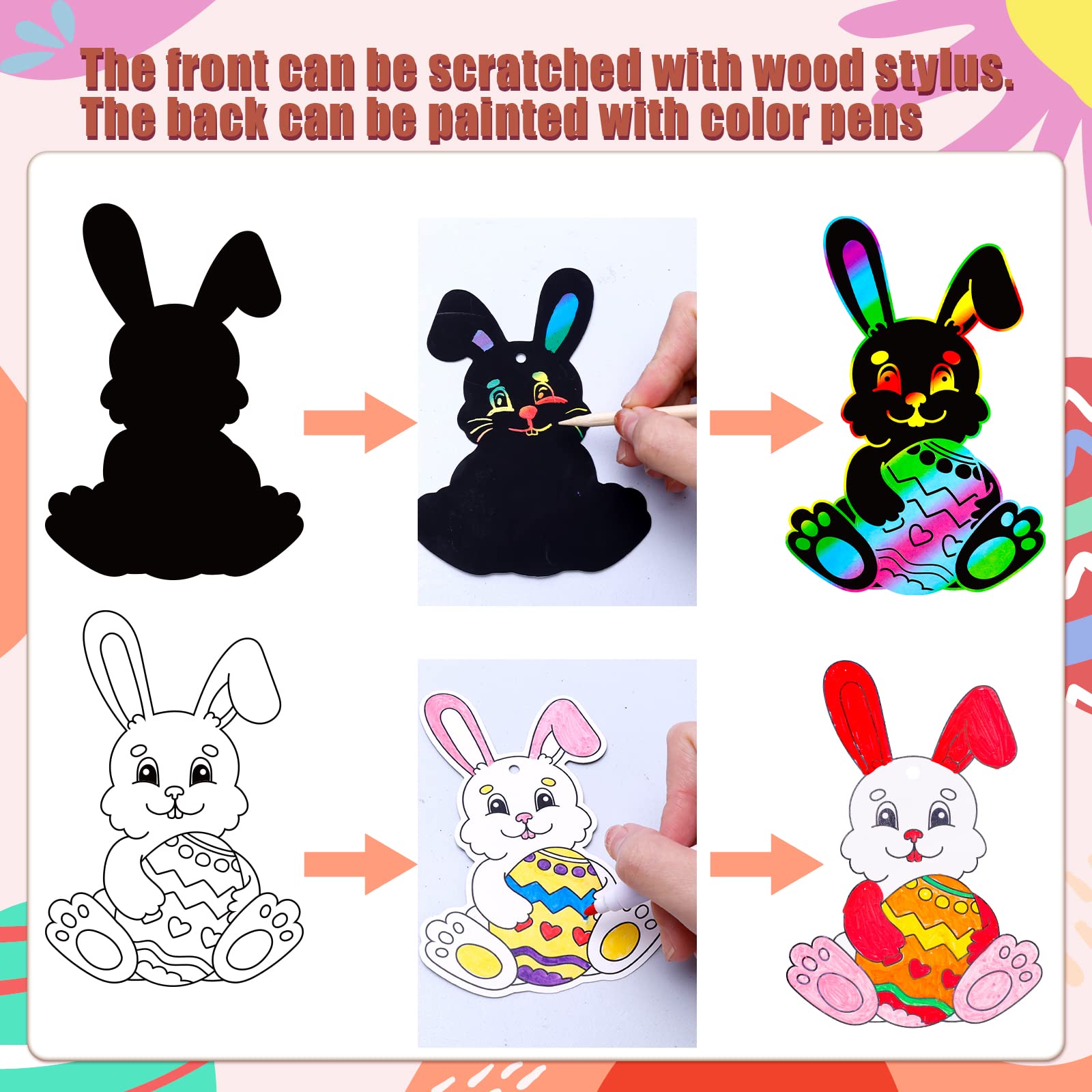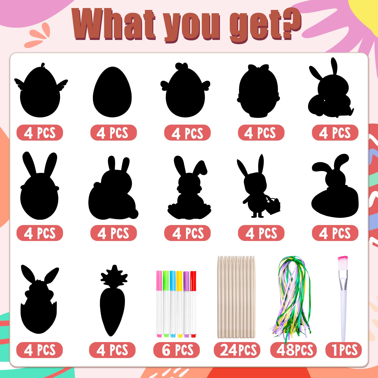 Max Fun Easter Crafts Kit Rainbow Color Scratch Paper Easter Ornaments (48 Counts)-Easter Craft Kit for Kids Easter Basket Stuff