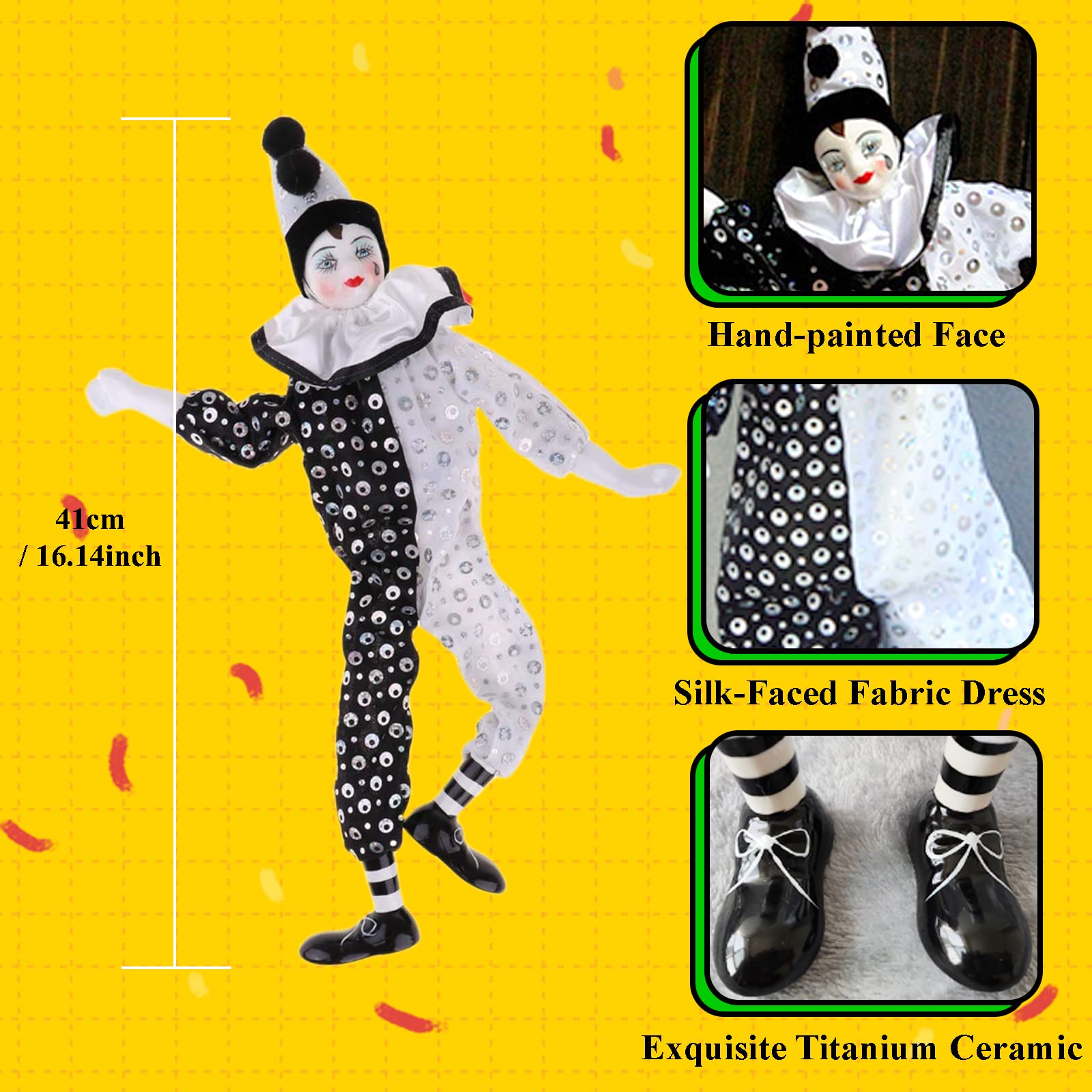 Maxyoung 16 Inch Porcelain Clown Doll Vintage Dolls Figurine, Collectible Figure, Hand Painted Toy, Christmas Halloween Birthday Gift, Twisted Body